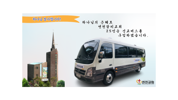 하나님의 은헤로 연천감리교회 25인승 선교버스를 구입하였습니다. 어려운 상황 가운데 구입한 버스이지만 하나님의 마음으로 연천땅과 한국땅에 선교의 발걸음…