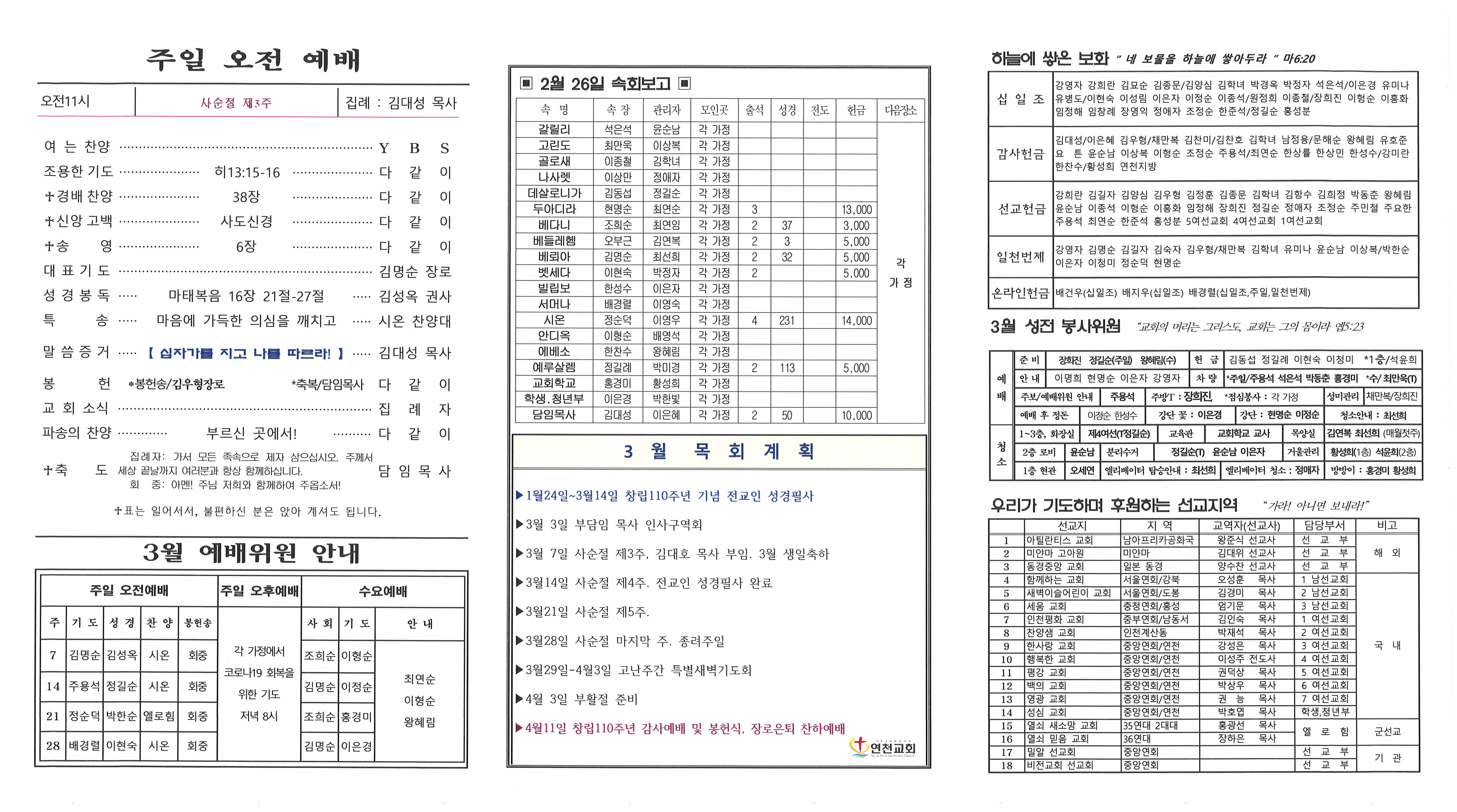 2021년 3월 7일 교회 주보 본문 2021년 3월 7일 교회 주보2021년 3월 7일 교회 주보 샬롬 연천교회 조회 1,448회 2021-03-06 13:04 목록 댓글목록 이전글 2021년 3월 14일 교회주보 21.03.13 다음글 2021년 2월 28일 교회주보 21.02.27