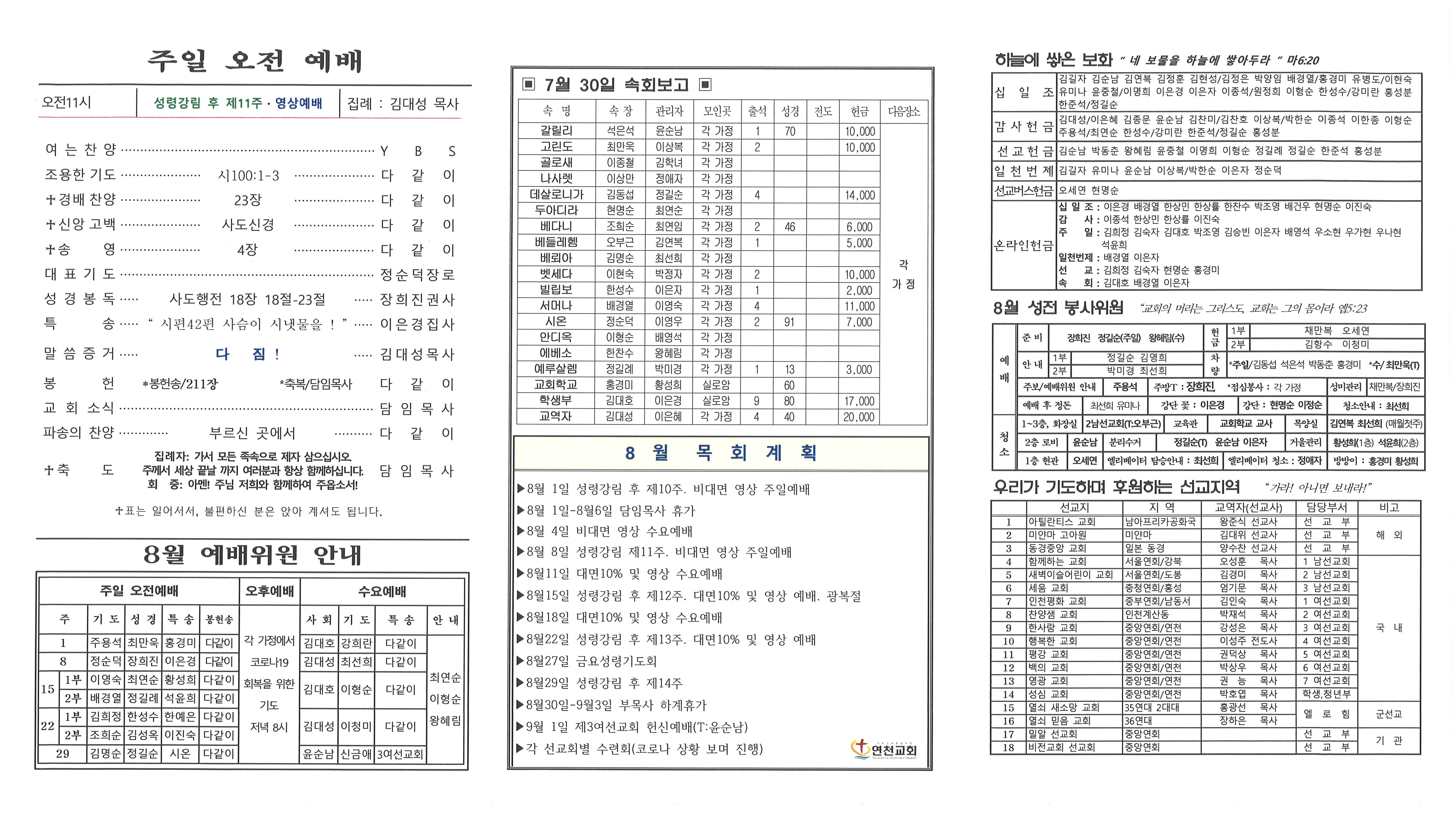 2021년 8월 8일 교회주보 본문 2021년 8월 8일 교회주보2021년 8월 8일 교회주보 샬롬 연천교회 조회 1,057회 2021-08-08 10:06 목록 댓글목록 이전글 2021년 8월 15일 교회소식 21.08.14 다음글 2021년 8월 1일 교회주보 21.07.31