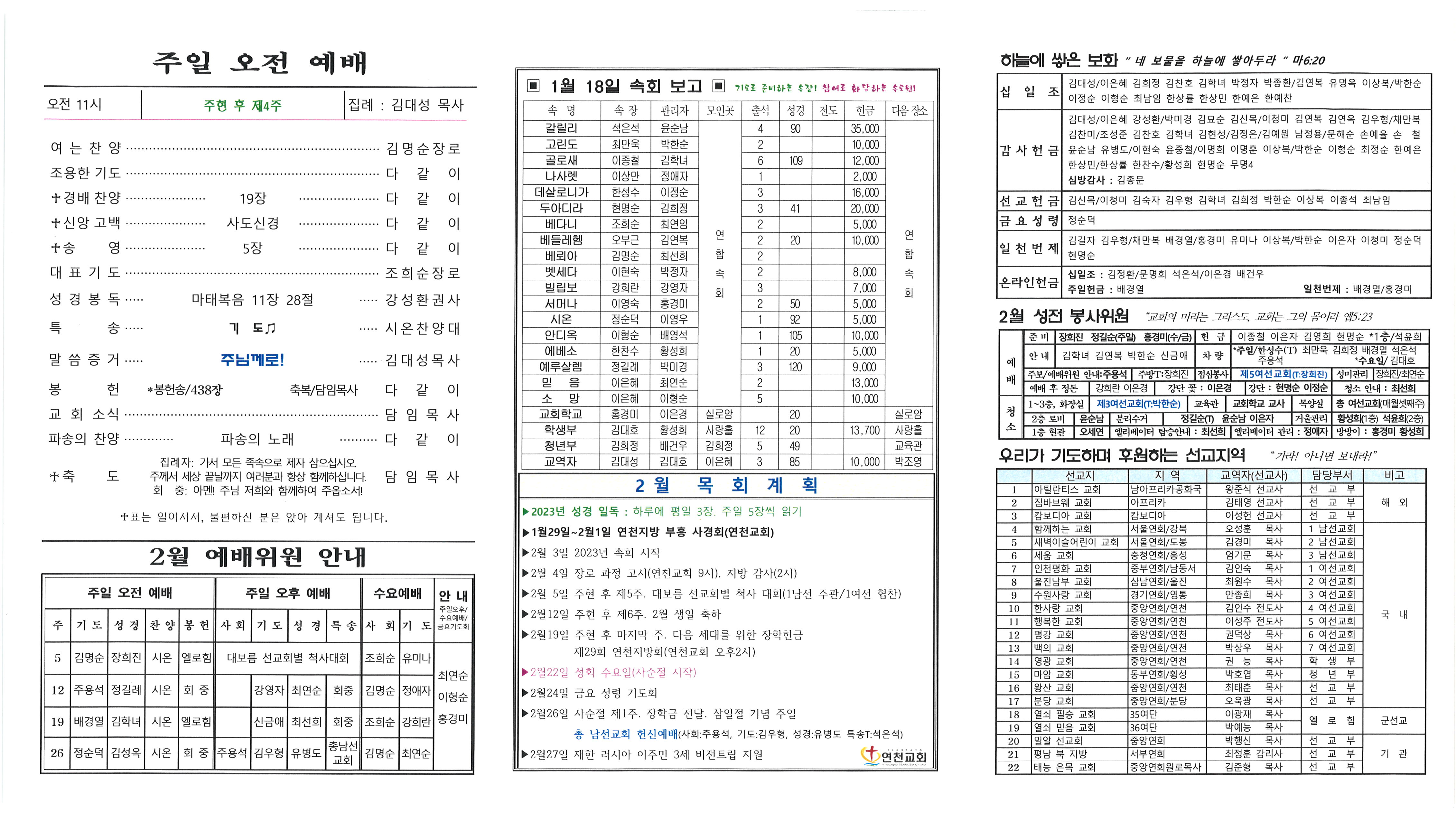 2023년 1월 29일 교회주보 본문 2023년 1월 29일 교회주보2023년 1월 29일 교회주보 샬롬 연천교회 조회 263회 2023-01-28 11:52 목록 댓글목록 이전글 2023년 2월 5일 교회주보 23.02.04 다음글 2023년 1월 22일 교회주보 23.01.21