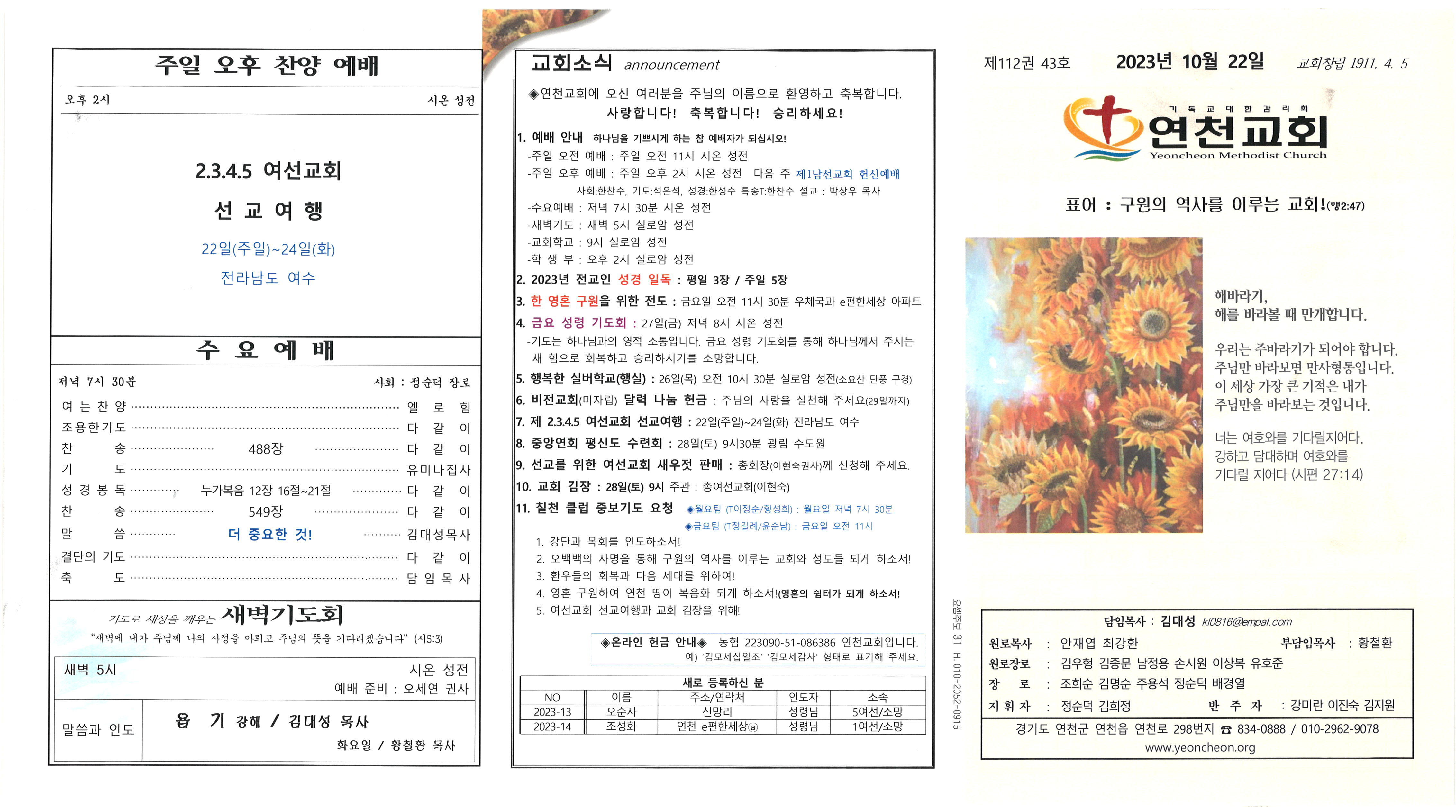 2023년 10월 22일 교회주보 본문 2023년 10월 22일 교회주보2023년 10월 22일 교회주보 샬롬 연천교회 조회 109회 2023-10-21 11:10 목록 댓글목록 이전글 2023년 10월 29일 교회주보 23.10.28 다음글 2023년 10월 15일 교회주보 23.10.14