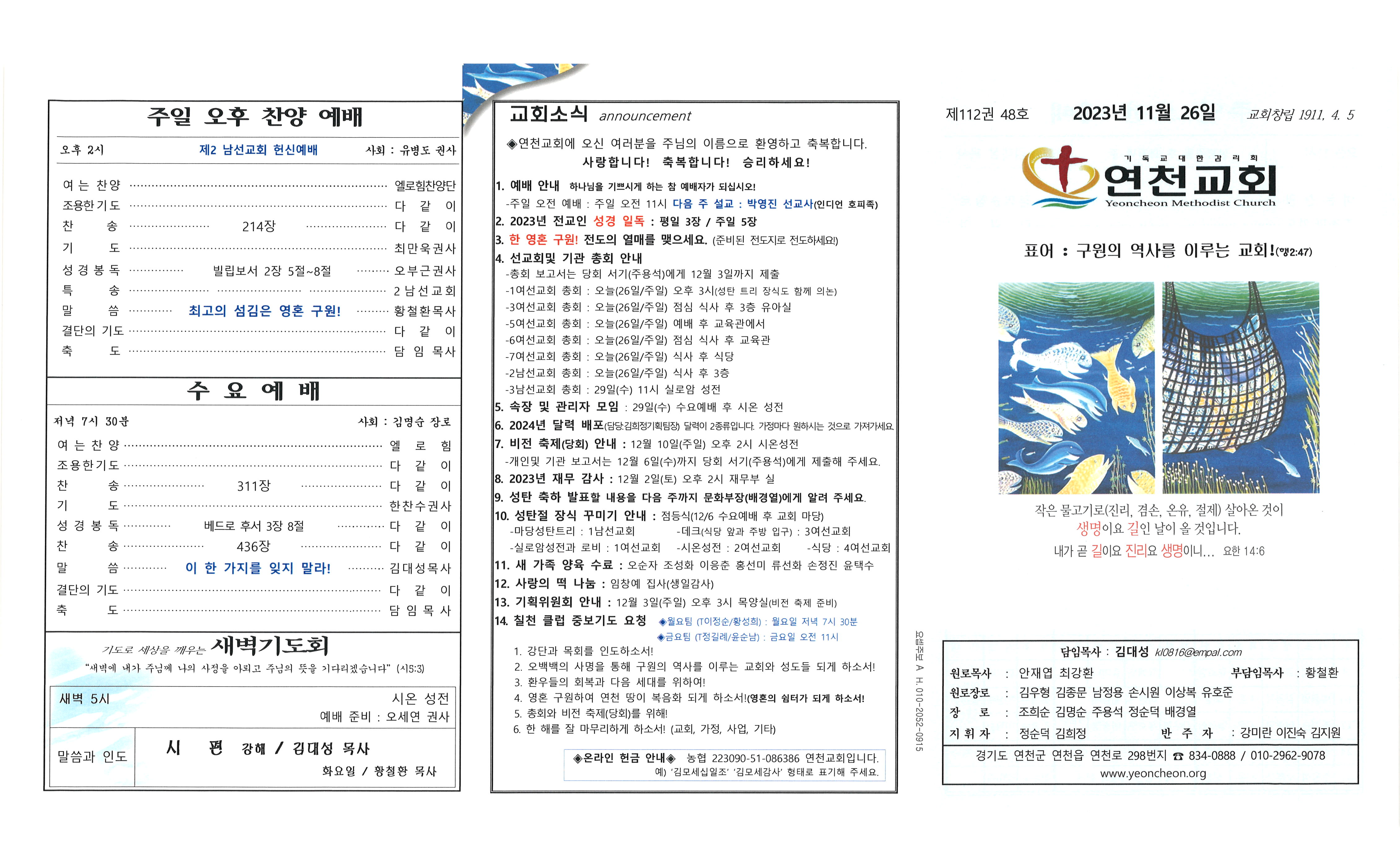2023년 11월 26일 교회주보 본문 2023년 11월 26일 교회주보2023년 11월 26일 교회주보 샬롬 연천교회 조회 106회 2023-11-25 11:11 목록 댓글목록 이전글 2023년 12월 3일 교회주보 23.12.02 다음글 2023년 11월 19일 교회주보 23.11.18