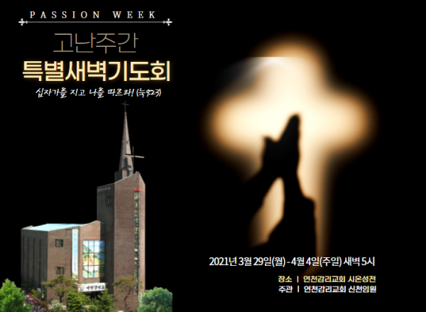 2021년 고난주간이 시작되었습니다. 신천임원주관으로 전교인 고난주간특벽새벽기도회로 모였습니다. …