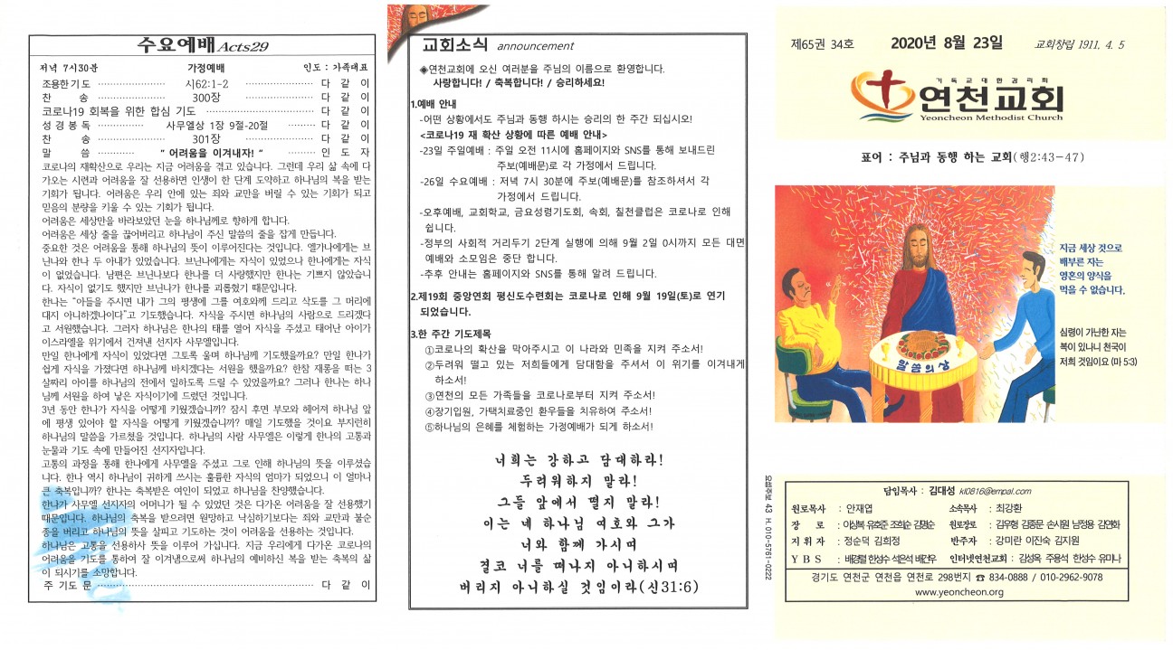 2020년08월23일교회주보 본문 2020년08월23일교회주보2020년08월23일교회주보 8월23일 교회주보 연천교회 조회 2,265회 2020-08-22 13:06 목록 댓글목록 이전글 2020년 8월 30일 교회주보 20.08.29 다음글 2020년 08월16일 교회주보 20.08.15