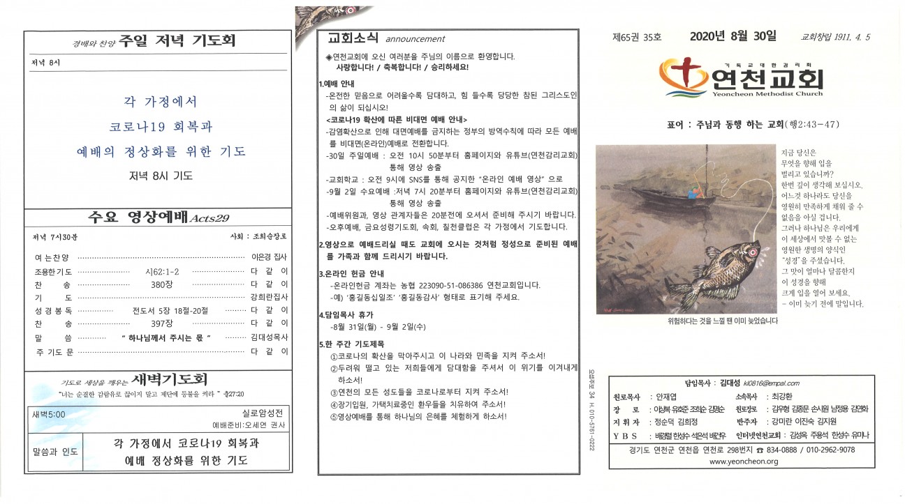 2020년 8월 30일 교회주보 본문 2020년 8월 30일 교회주보2020년 8월 30일 교회주보 샬롬 연천교회 조회 2,162회 2020-08-29 12:03 목록 댓글목록 이전글 2020년 9월 6일 교회주보 20.09.05 다음글 2020년08월23일교회주보 20.08.22