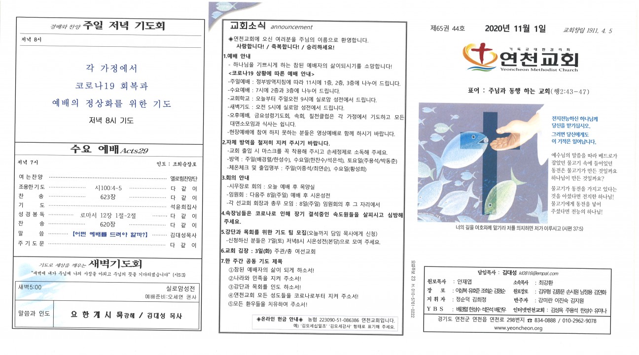2020년 11월 1일 교회주보 본문 2020년 11월 1일 교회주보2020년 11월 1일 교회주보 샬롬 연천교회 조회 1,929회 2020-10-31 12:01 목록 댓글목록 이전글 2020년 11월 8일 교회주보 20.11.07 다음글 2020년 10월 25일 교회주보 20.10.24