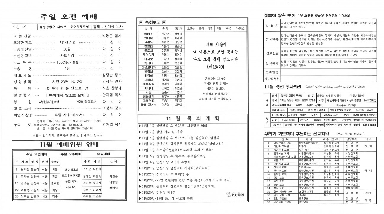 2020년 11월 15일 교회주보 본문 2020년 11월 15일 교회주보2020년 11월 15일 교회주보 샬롬 연천교회 조회 1,844회 2020-11-14 17:18 목록 댓글목록 이전글 2020년 11월 22일 교회주보 20.11.21 다음글 2020년 11월 8일 교회주보 20.11.07