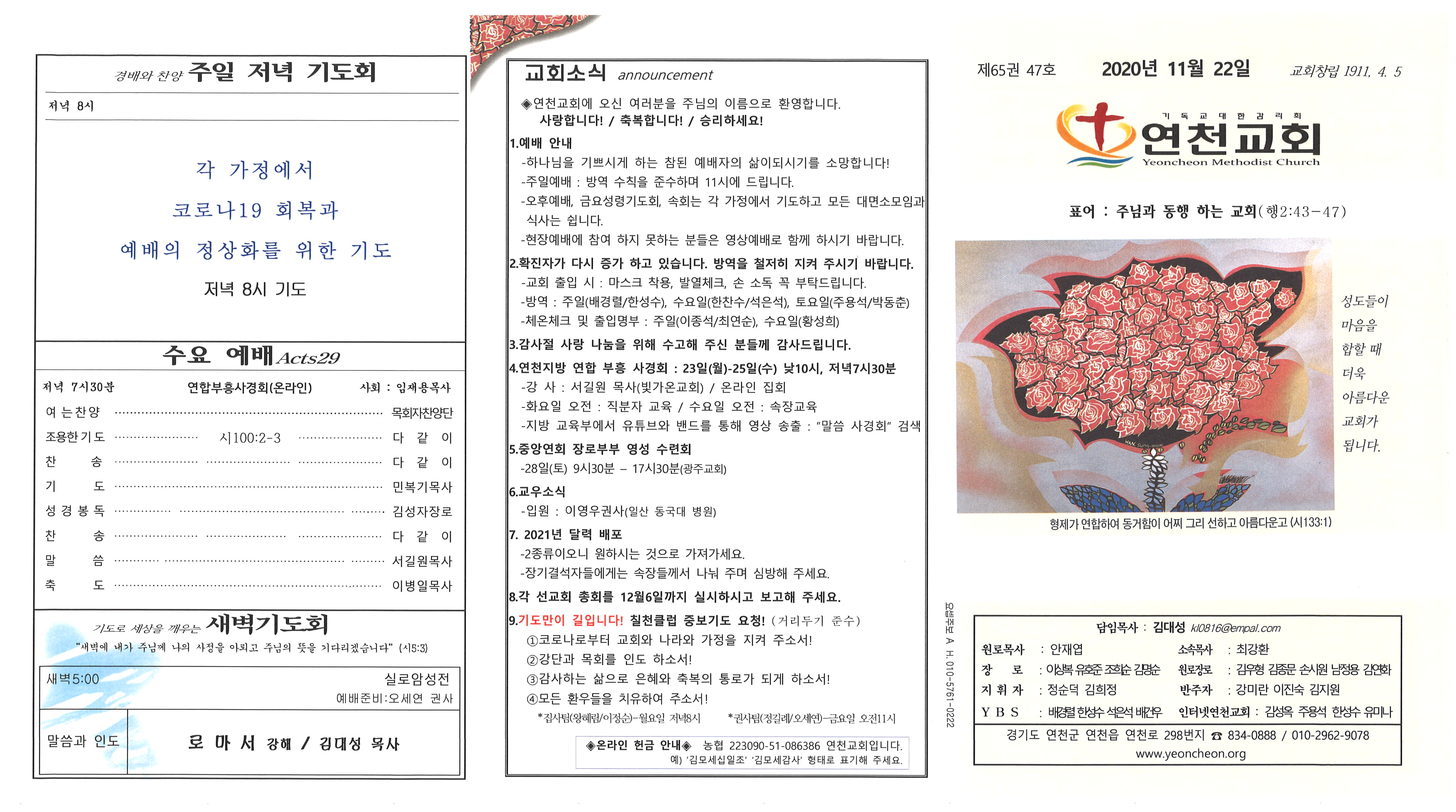 2020년 11월 22일 교회주보 본문 2020년 11월 22일 교회주보2020년 11월 22일 교회주보 샬롬 연천교회 조회 1,874회 2020-11-21 10:50 목록 댓글목록 이전글 11월 29일 교회주보 20.11.28 다음글 2020년 11월 15일 교회주보 20.11.14