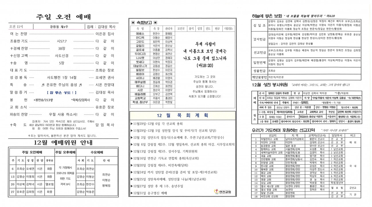 2020년 12월 6일 교회주보 본문 2020년 12월 6일 교회주보2020년 12월 6일 교회주보 샬롬 연천교회 조회 1,812회 2020-12-05 10:40 목록 댓글목록 이전글 2020년 12월 13일 교회주보 20.12.12 다음글 11월 29일 교회주보 20.11.28