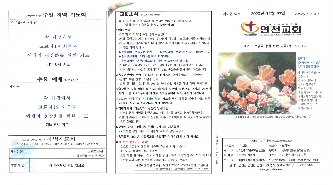 2020년 12월 27일 교회주보 본문 2020년 12월 27일 교회주보2020년 12월 27일 교회주보 샬롬 연천교회 조회 1,698회 2020-12-26 13:57 목록 댓글목록 이전글 2021년 1월 3일 교회주보 21.01.02 다음글 2020년12월25일 성탄축하예배 20.12.25