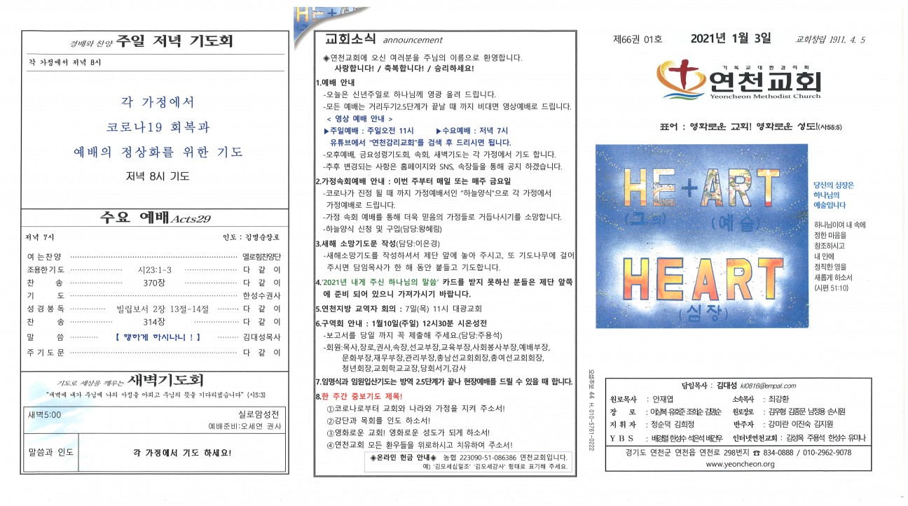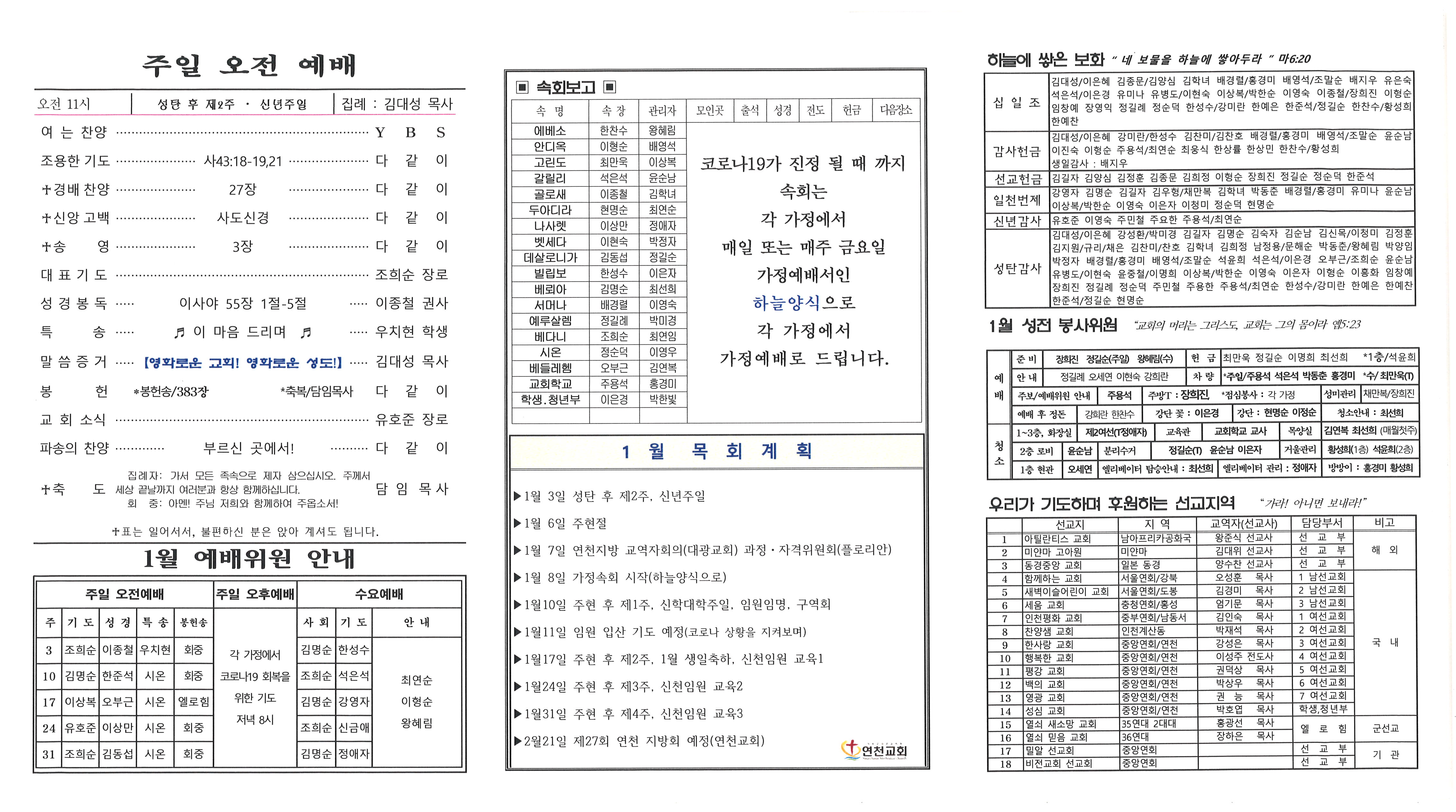 2021년 1월 3일 교회주보 본문 2021년 1월 3일 교회주보2021년 1월 3일 교회주보 샬롬 연천교회 조회 1,702회 2021-01-02 10:26 목록 댓글목록 이전글 2021년 1월 21.01.09 다음글 2020년 12월 27일 교회주보 20.12.26