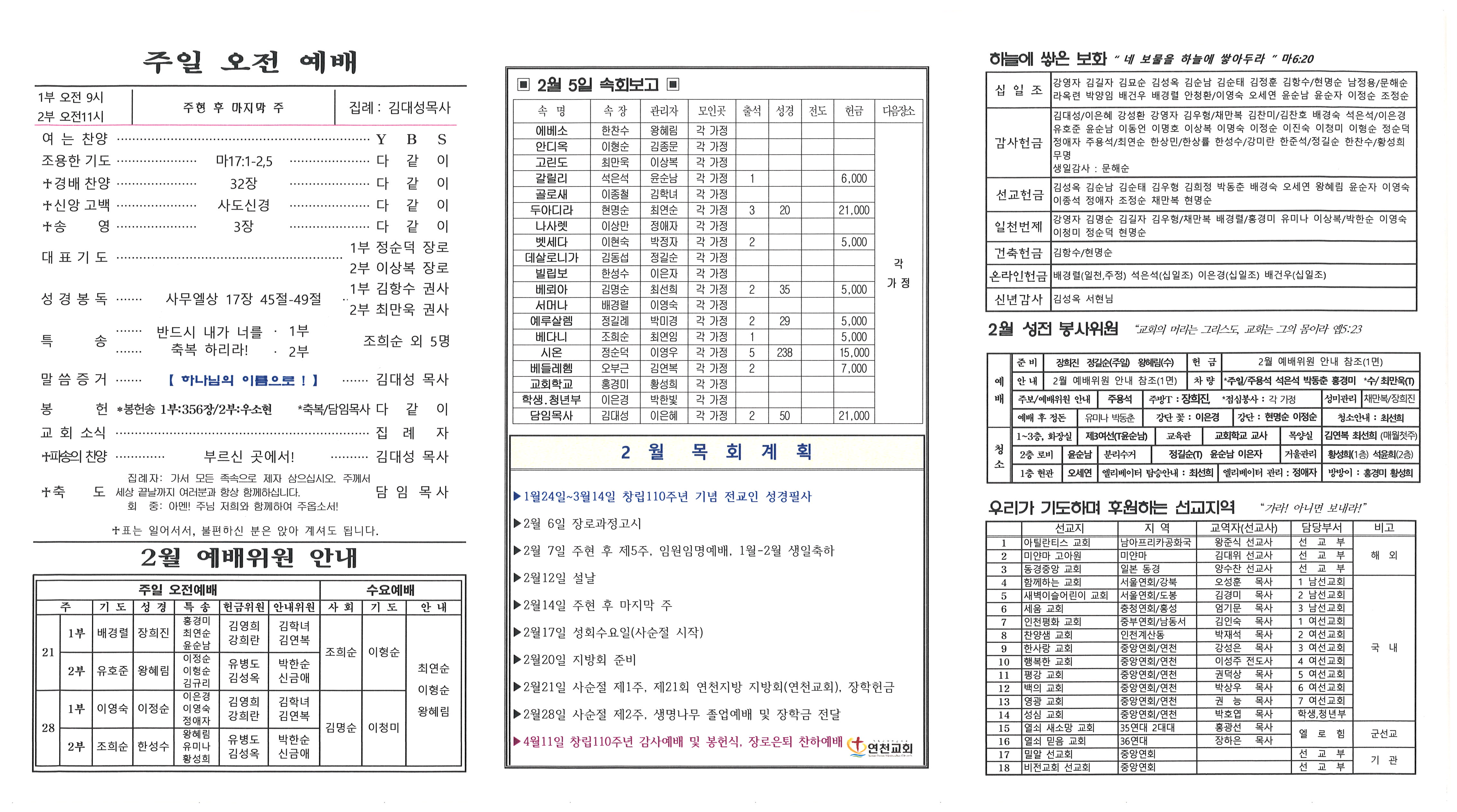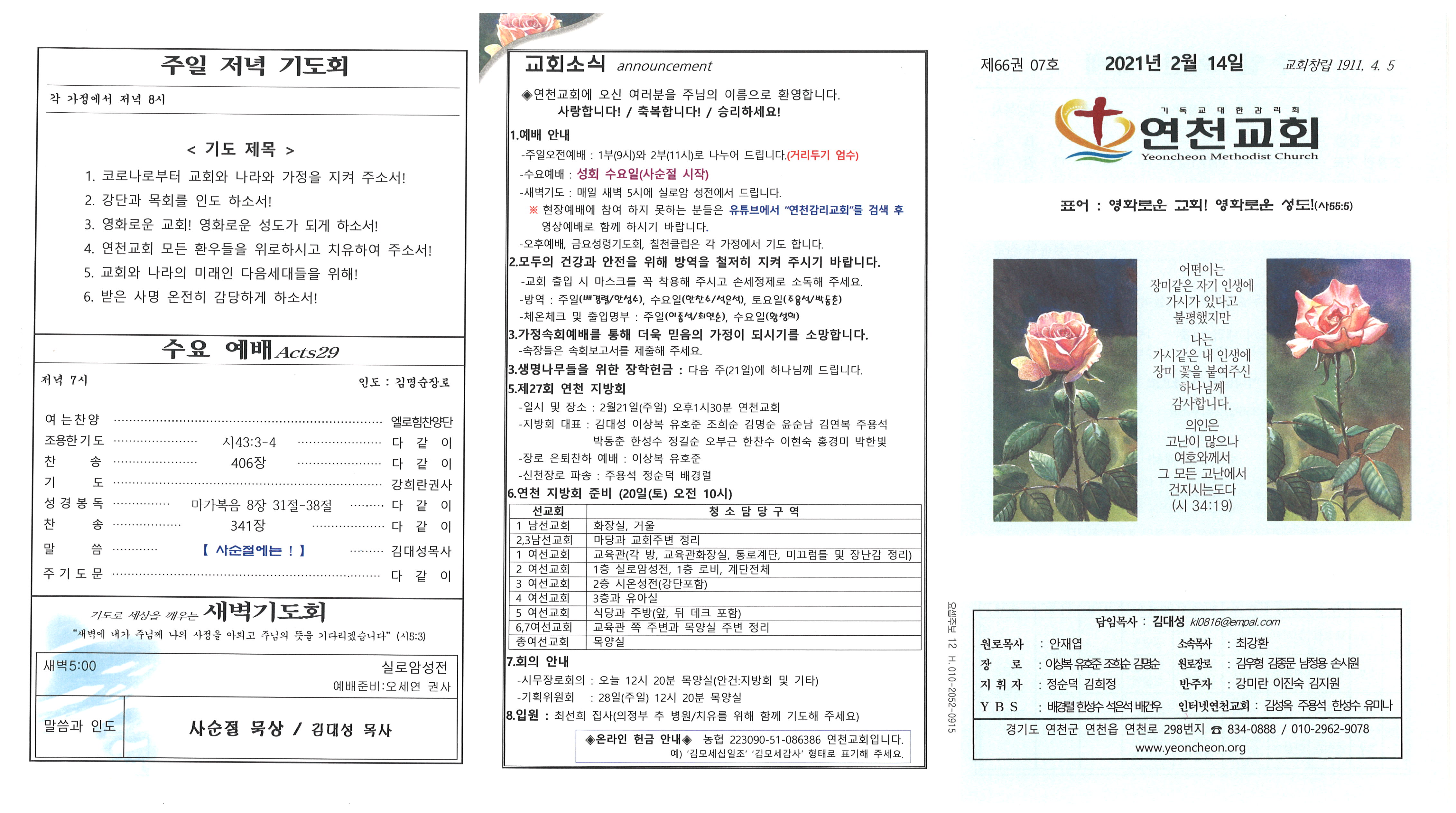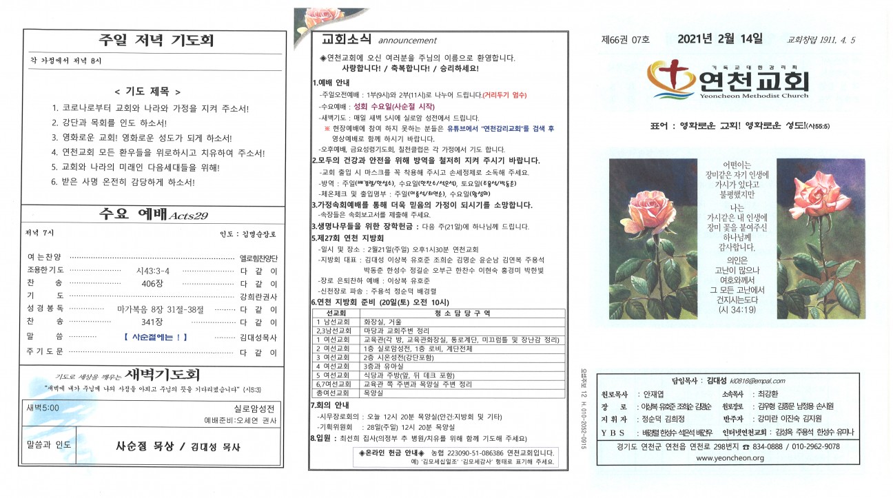2021년 2월 14일 교회주보 본문 2021년 2월 14일 교회주보2021년 2월 14일 교회주보 샬롬 연천교회 조회 1,579회 2021-02-13 12:27 목록 댓글목록 이전글 2021년 2월 21일 교회주보 21.02.21 다음글 2021년 2월 7일 교회주보 21.02.06