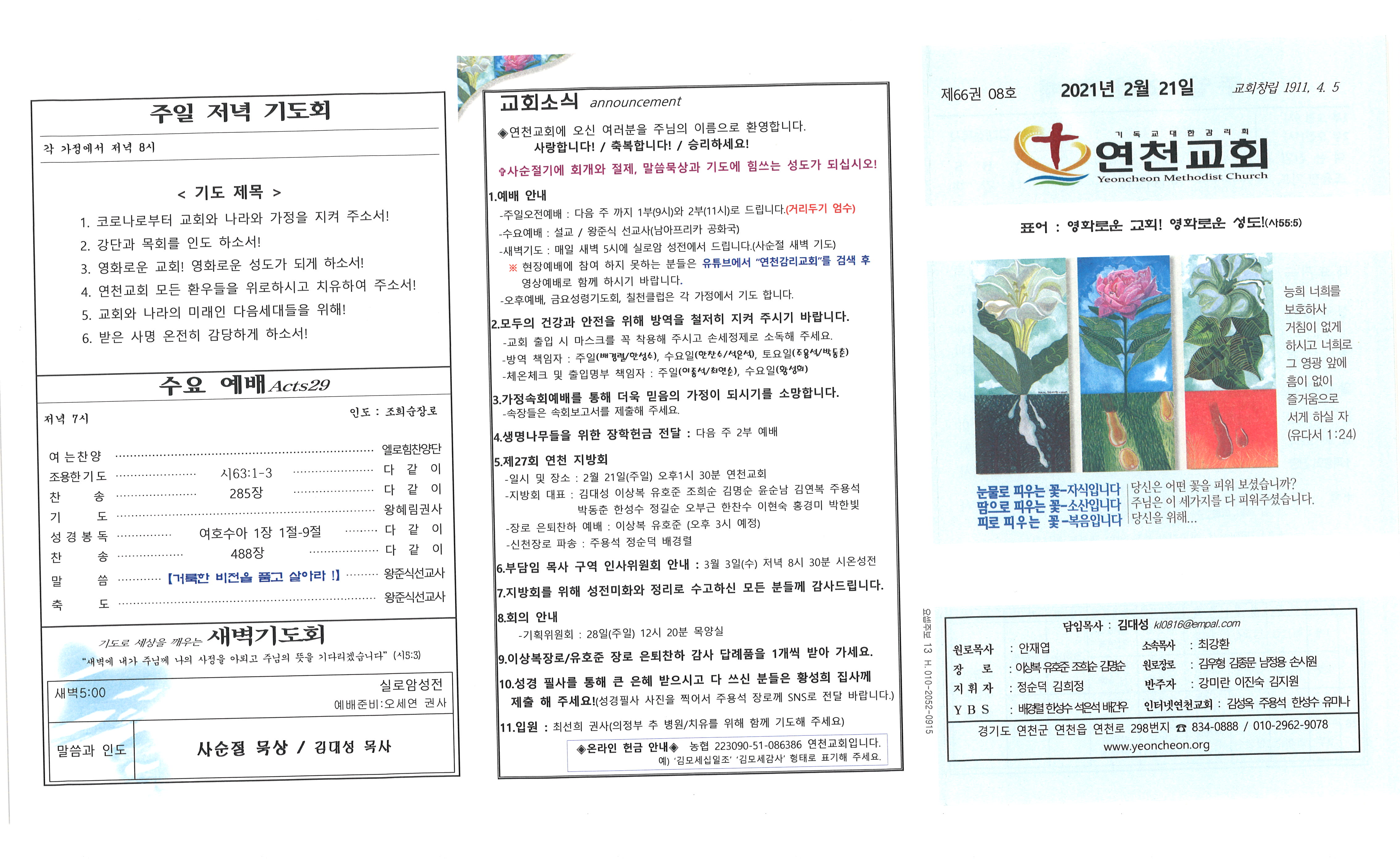 2021년 2월 21일 교회주보 본문 2021년 2월 21일 교회주보2021년 2월 21일 교회주보 샬롬 연천교회 조회 1,555회 2021-02-21 07:21 목록 댓글목록 이전글 2021년 2월 28일 교회주보 21.02.27 다음글 2021년 2월 14일 교회주보 21.02.13