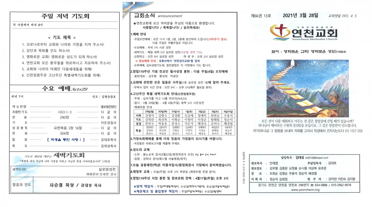 2021년 3월 28일 교회주보 본문 2021년 3월 28일 교회주보2021년 3월 28일 교회주보 샬롬 연천교회 조회 1,521회 2021-03-27 14:07 목록 댓글목록 이전글 2021년 4월 4일 교회주보 21.04.03 다음글 2021년 3월 21일 교회주보 21.03.20