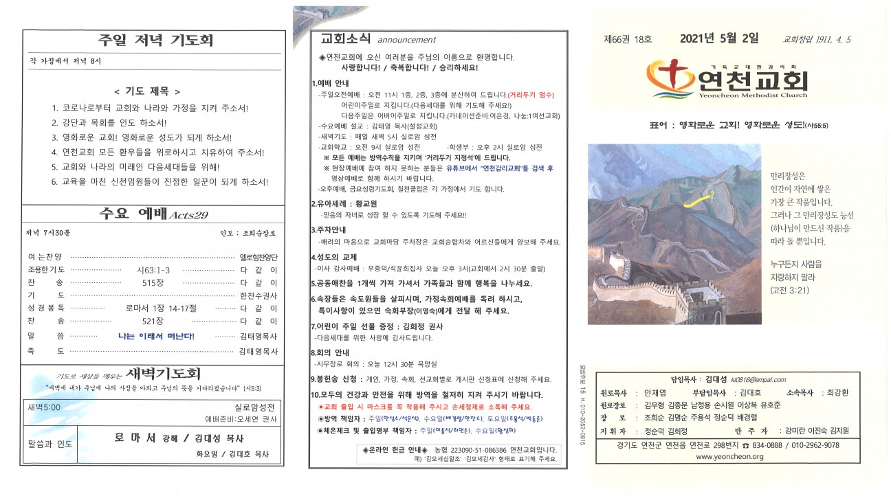 2021년 5월 2일 교회주보 본문 2021년 5월 2일 교회주보2021년 5월 2일 교회주보 샬롬 연천교회 조회 1,483회 2021-05-01 13:18 목록 댓글목록 이전글 2021년 5월 9일 교회주보 21.05.08 다음글 2021년 4월 25일 교회주보 21.04.24