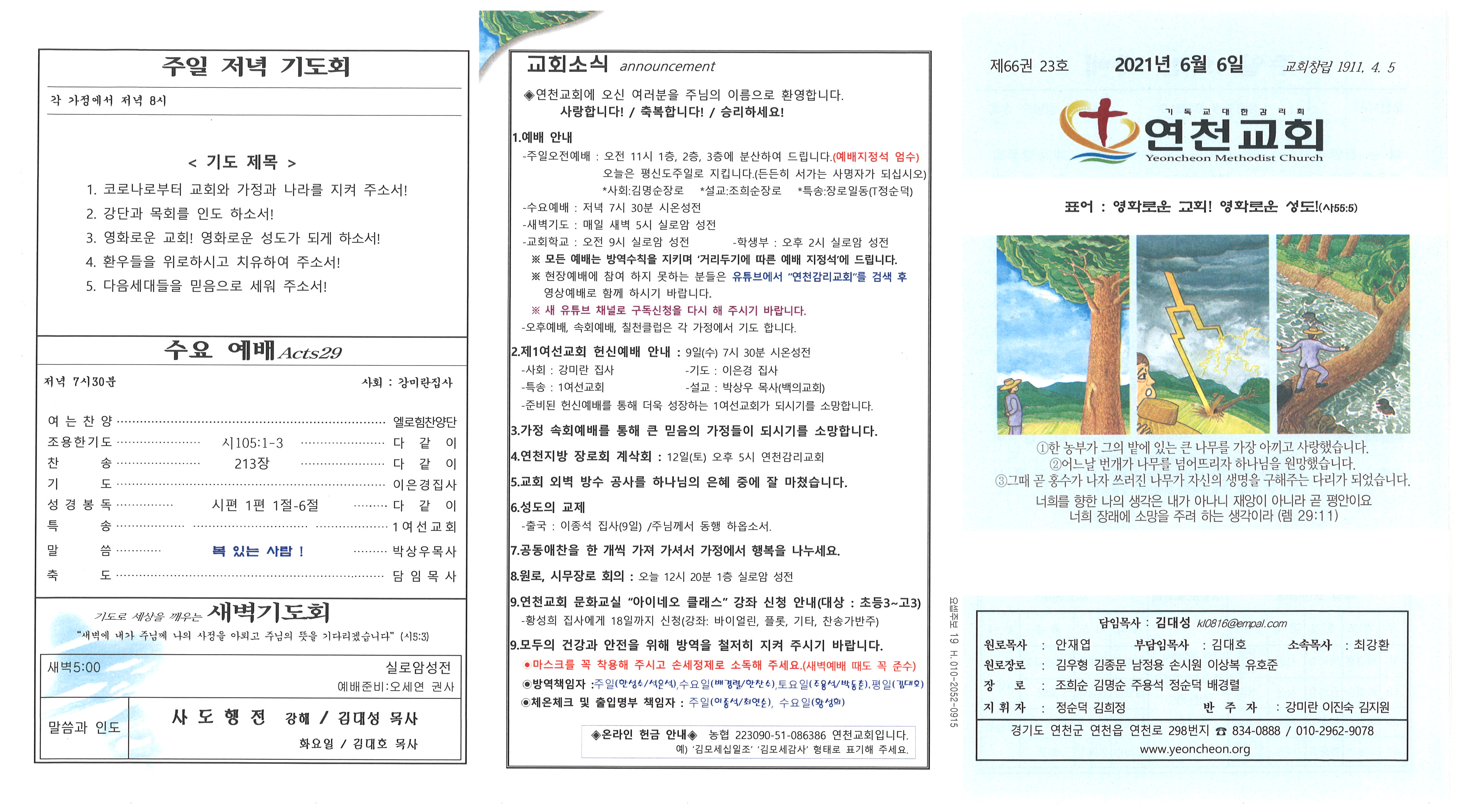 2021년 6월 6일 교회주보 본문 2021년 6월 6일 교회주보2021년 6월 6일 교회주보 샬롬 연천교회 조회 1,247회 2021-06-05 13:22 목록 댓글목록 이전글 2021년 6월 13일 교회주보 21.06.12 다음글 2021년 5월 30일 교회주보 21.05.29