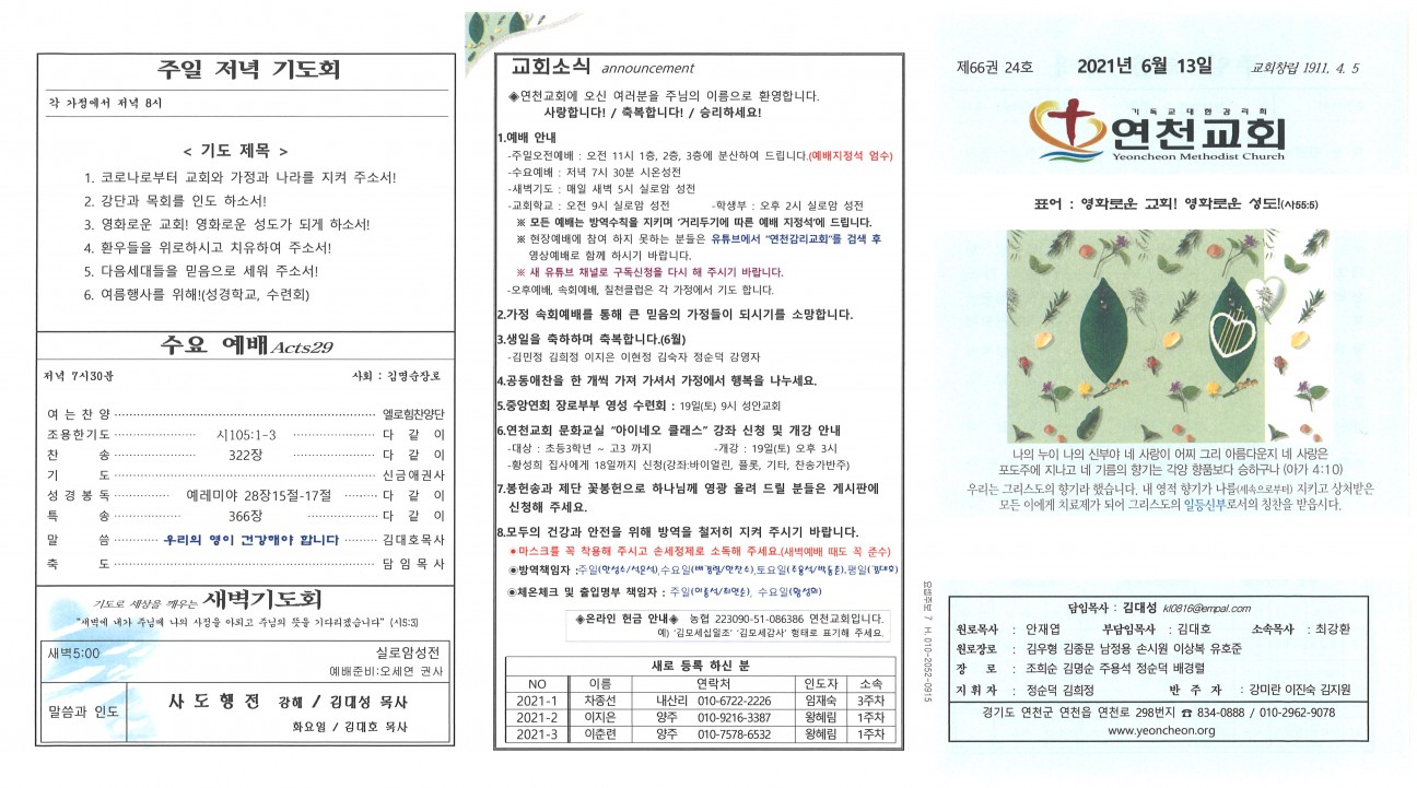 2021년 6월 13일 교회주보 본문 2021년 6월 13일 교회주보2021년 6월 13일 교회주보 샬롬 연천교회 조회 1,307회 2021-06-12 11:44 목록 댓글목록 이전글 2021년 6월 20일 교회주보 21.06.19 다음글 2021년 6월 6일 교회주보 21.06.05