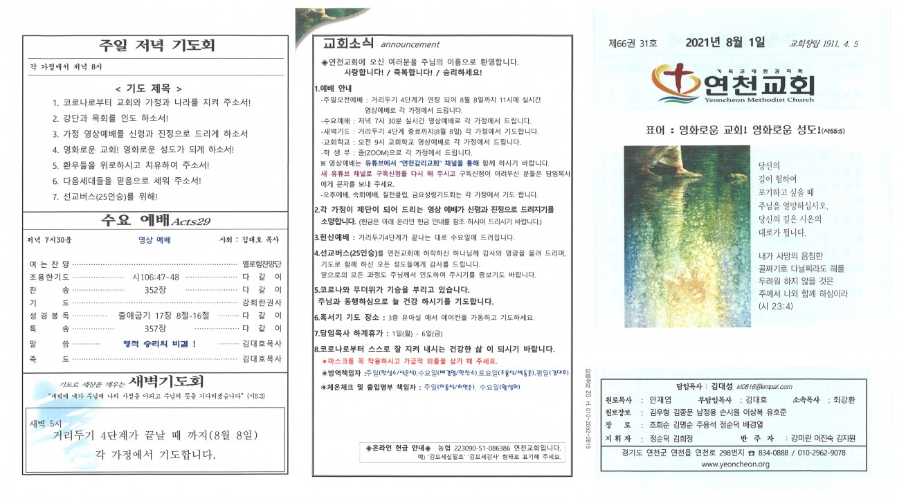 2021년 8월 1일 교회주보 본문 2021년 8월 1일 교회주보2021년 8월 1일 교회주보 샬롬 연천교회 조회 1,193회 2021-07-31 13:21 목록 댓글목록 이전글 2021년 8월 8일 교회주보 21.08.08 다음글 2021년 7월 25일 교회주보 21.07.24