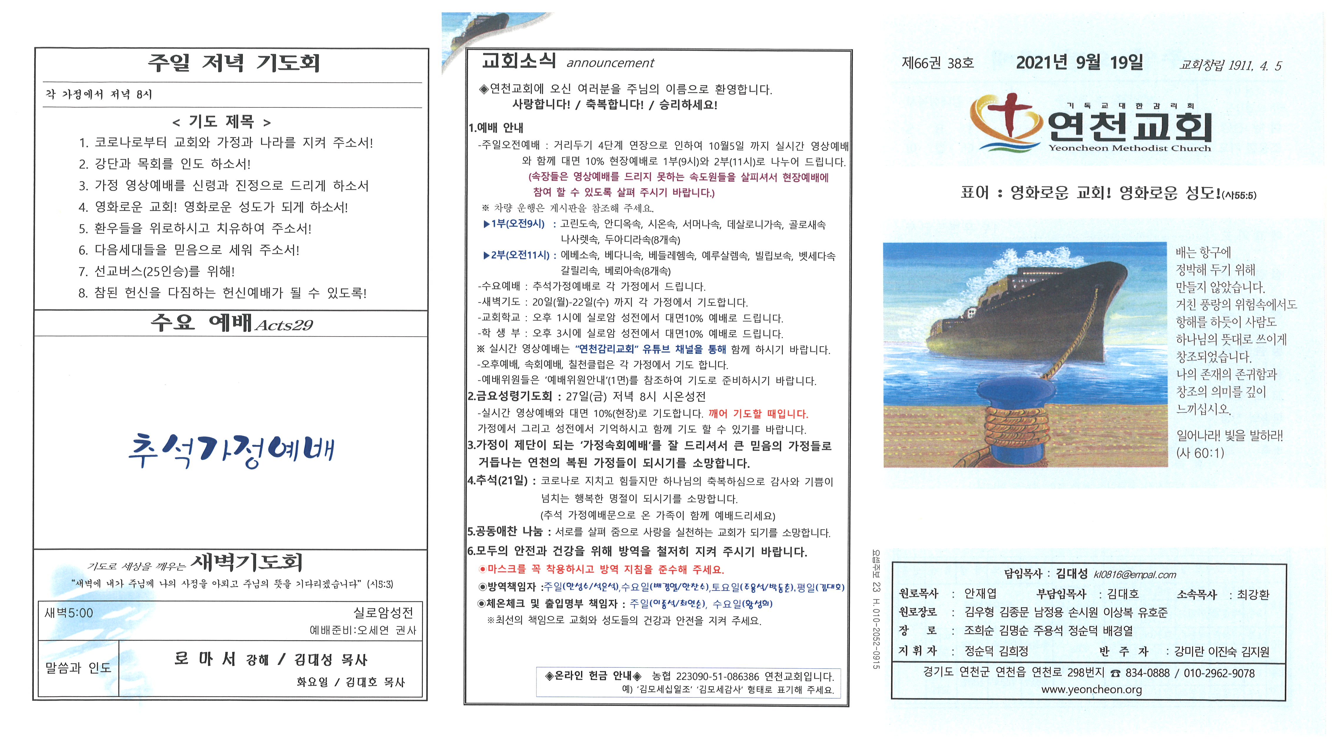 2021년 9월 19일 교회주보 본문 2021년 9월 19일 교회주보2021년 9월 19일 교회주보 샬롬 연천교회 조회 1,192회 2021-09-19 10:37 목록 댓글목록 이전글 2021년 9월 26일 21.09.25 다음글 2021년 9월 12일 교회주보 21.09.11