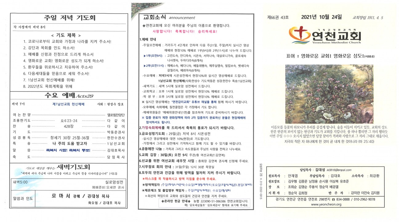 2021년 10월 24일 교회주보 본문 2021년 10월 24일 교회주보2021년 10월 24일 교회주보 샬롬 연천교회 조회 991회 2021-10-23 16:24 목록 댓글목록 이전글 2021년 10월 31일 교회주보 21.10.30 다음글 2021년 10월 17일 교회주보 21.10.16