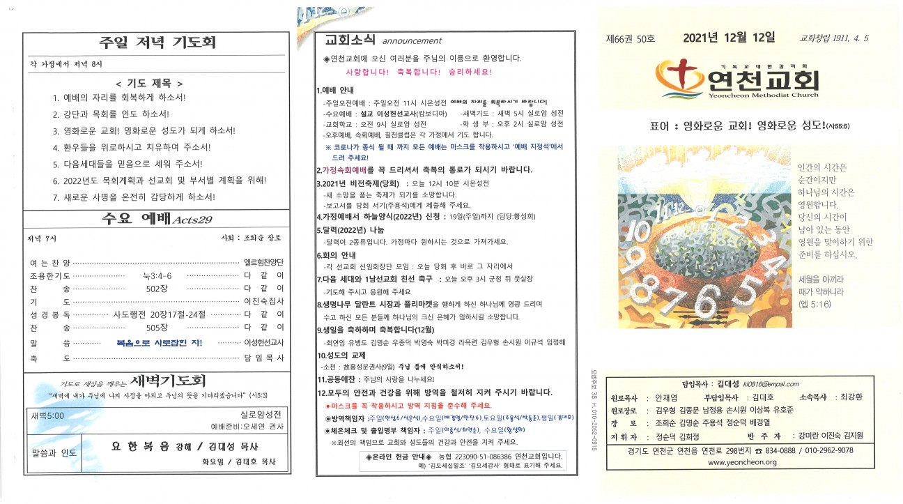 2021년 12월 12일 교회주보 본문 2021년 12월 12일 교회주보2021년 12월 12일 교회주보 샬롬 연천교회 조회 991회 2021-12-11 13:53 목록 댓글목록 이전글 2021년 12월 19일 교회주보 21.12.18 다음글 2021년 12월 5일 교회주보 21.12.05
