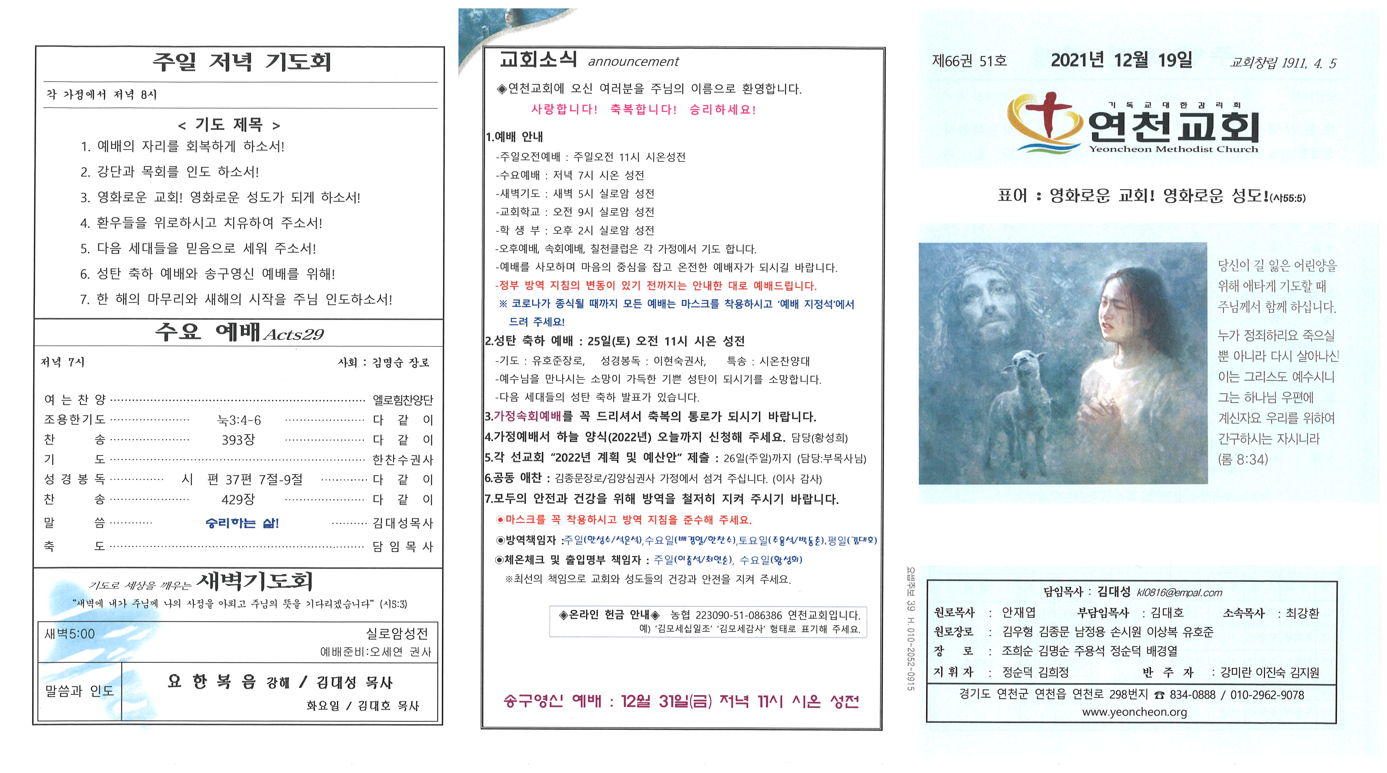 2021년 12월 19일 교회주보 본문 2021년 12월 19일 교회주보2021년 12월 19일 교회주보 샬롬 연천교회 조회 958회 2021-12-18 13:06 목록 댓글목록 이전글 2021년 12월 25일 성탄주보 21.12.24 다음글 2021년 12월 12일 교회주보 21.12.11