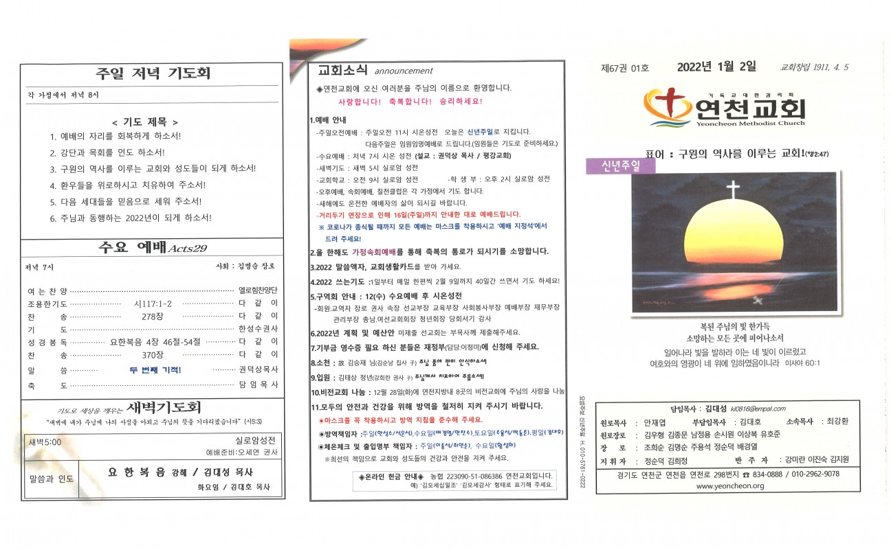 2022년 1월 2일 교회주보 본문 2022년 1월 2일 교회주보2022년 1월 2일 교회주보 샬롬 연천교회 조회 988회 2022-01-01 14:09 목록 댓글목록 이전글 2022년 1월 9일 교회주보 22.01.08 다음글 2021년 12월 26일 교회주보 21.12.25