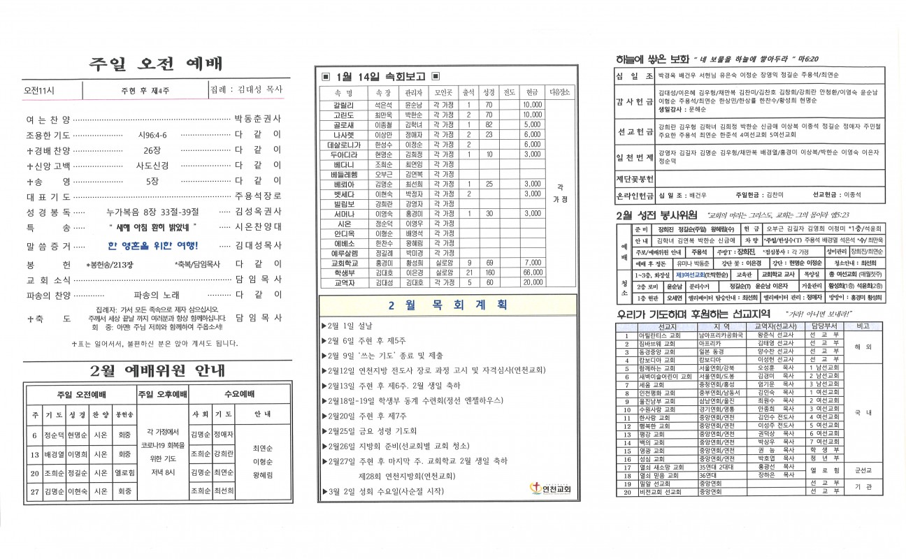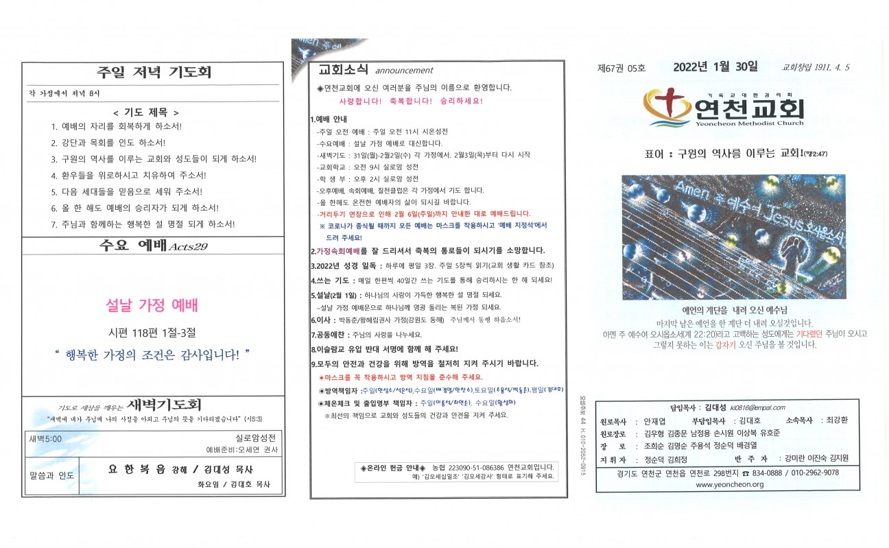 2022년 1월 30일 교회주보 본문 2022년 1월 30일 교회주보2022년 1월 30일 교회주보 샬롬 연천교회 조회 891회 2022-01-29 11:24 목록 댓글목록 이전글 2022년 2월 1일 명절주보 22.01.29 다음글 2022년 1월 23일 교회주보 22.01.22