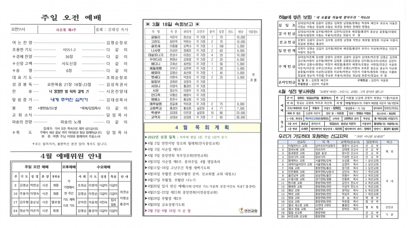 2022년 3월 27일 교회주보 본문 2022년 3월 27일 교회주보2022년 3월 27일 교회주보 샬롬 연천교회 조회 755회 2022-03-26 11:16 목록 댓글목록 이전글 2022년 4월 3일 교회주보 22.04.02 다음글 2022년 3월 20일 교회주보 22.03.26