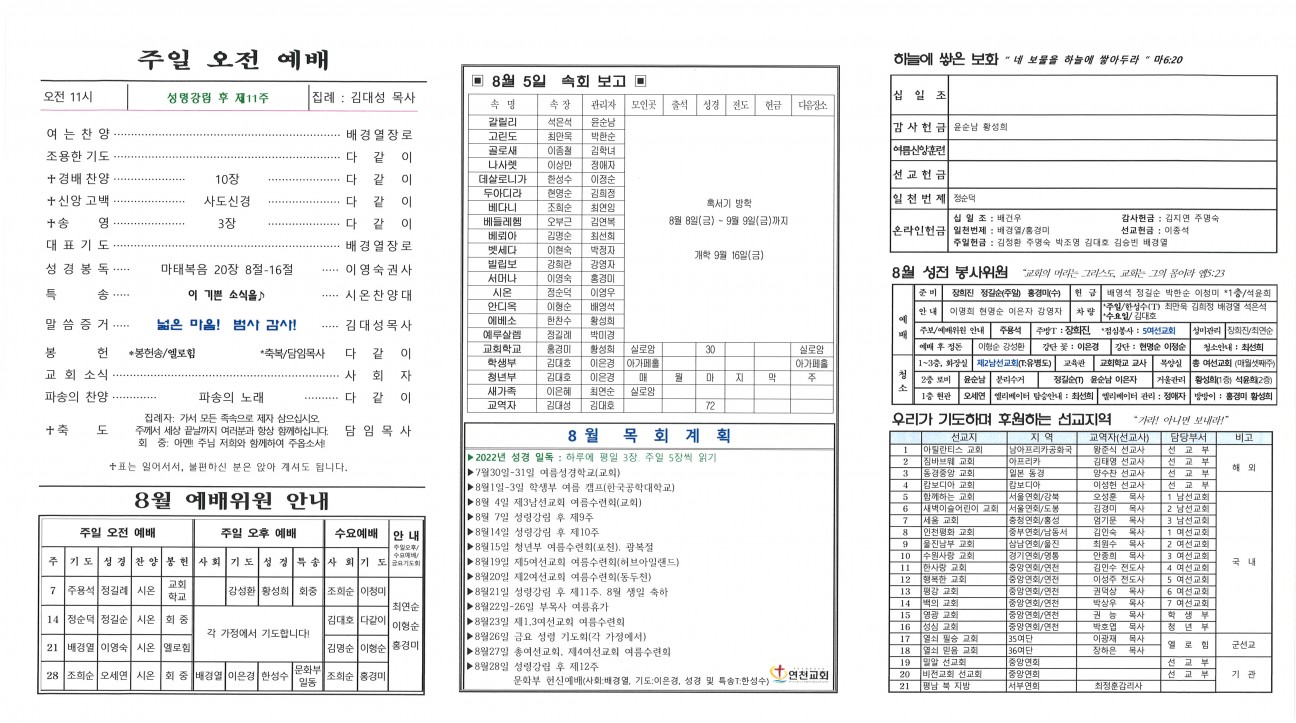 2022년 8월 21일 교회주보 본문 2022년 8월 21일 교회주보2022년 8월 21일 교회주보 샬롬 연천교회 조회 559회 2022-08-20 11:23 목록 댓글목록 이전글 2022냔 8월 28일 교회주보 22.08.27 다음글 2022년 8월 14일 교회주보 22.08.12