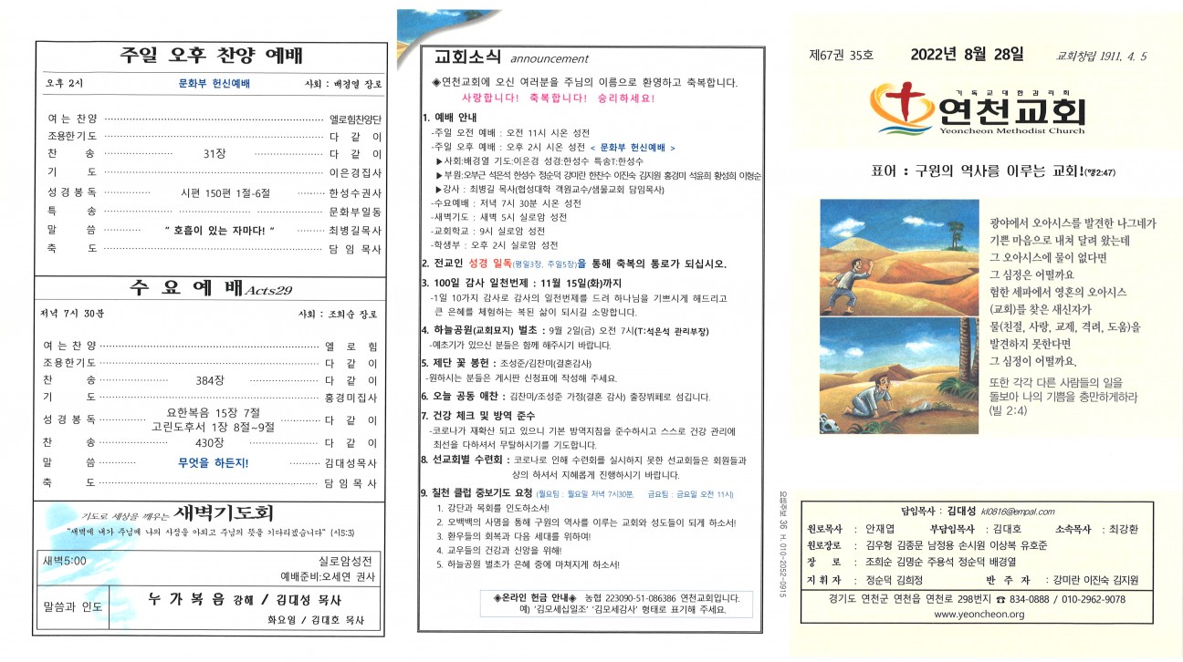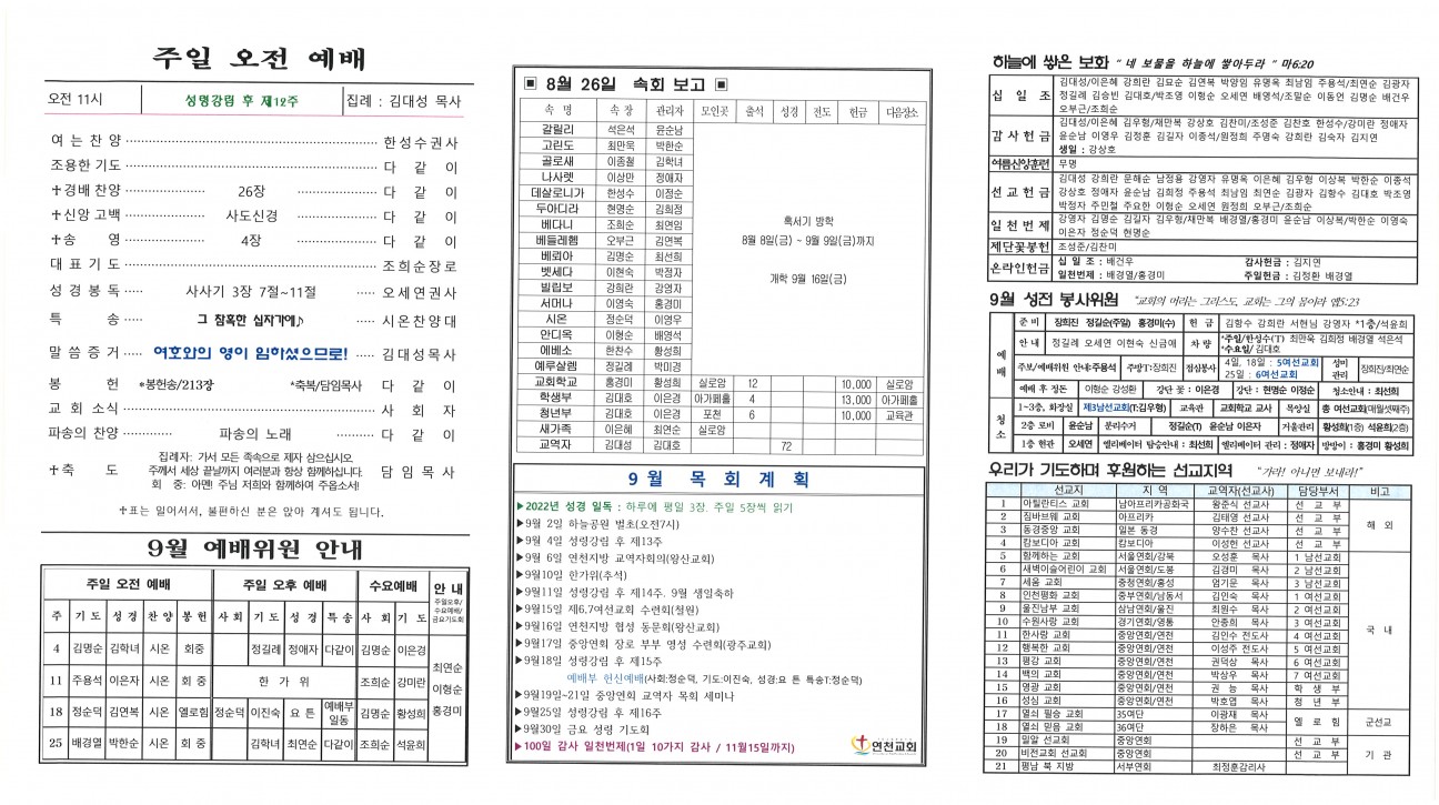 2022냔 8월 28일 교회주보 본문 2022냔 8월 28일 교회주보2022냔 8월 28일 교회주보 샬롬 연천교회 조회 518회 2022-08-27 13:09 목록 댓글목록 이전글 2022년 9월 4일 교회주보 22.09.03 다음글 2022년 8월 21일 교회주보 22.08.20