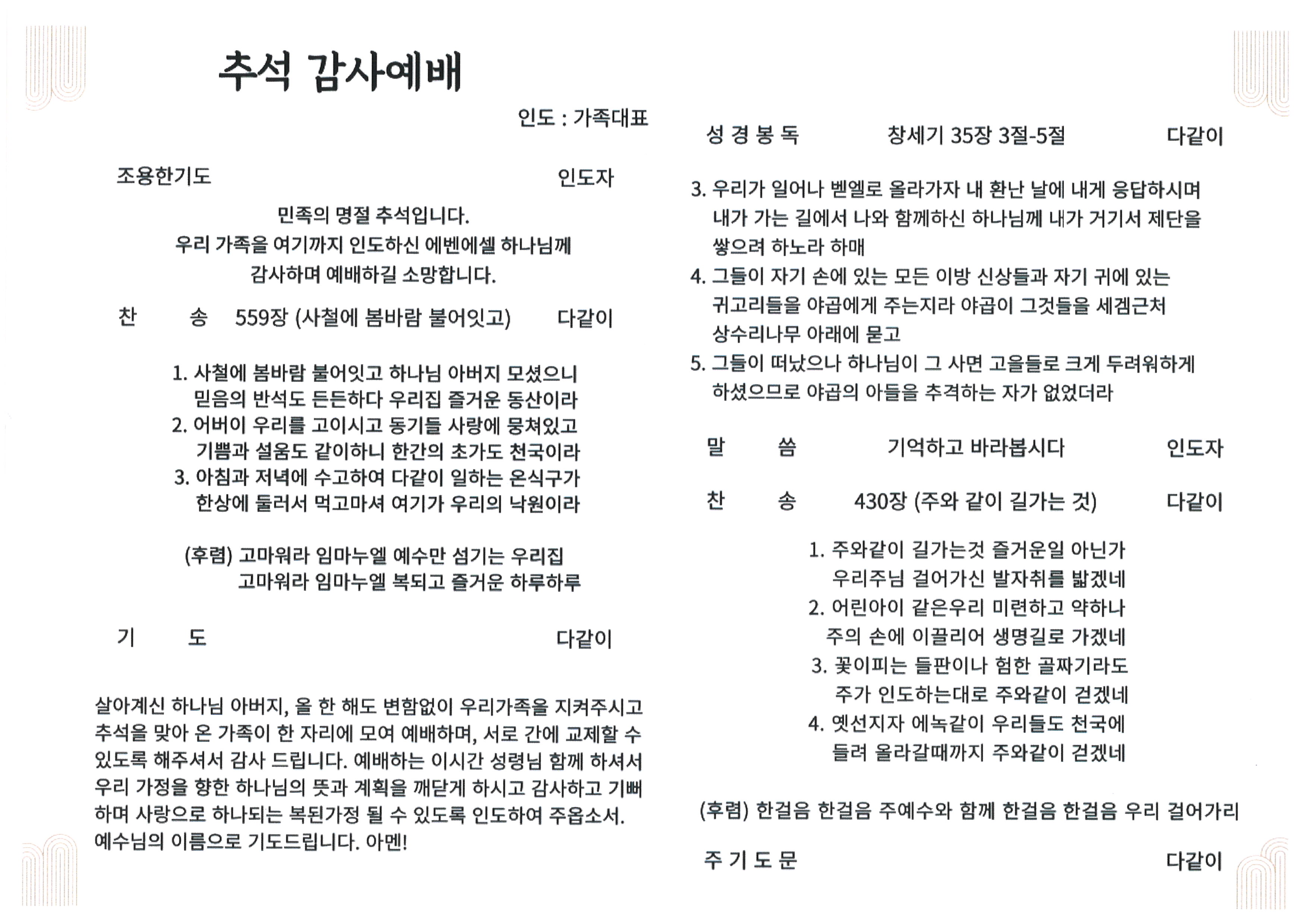 2022년 9월 10일 추석주보 본문 2022년 9월 10일 추석주보2022년 9월 10일 추석주보 은혜스러운 추석명절 되기를 기도합니다 연천교회 조회 495회 2022-09-09 10:26 목록 댓글목록 이전글 2022년 9월 11일 교회주보 22.09.09 다음글 2022년 9월 4일 교회주보 22.09.03