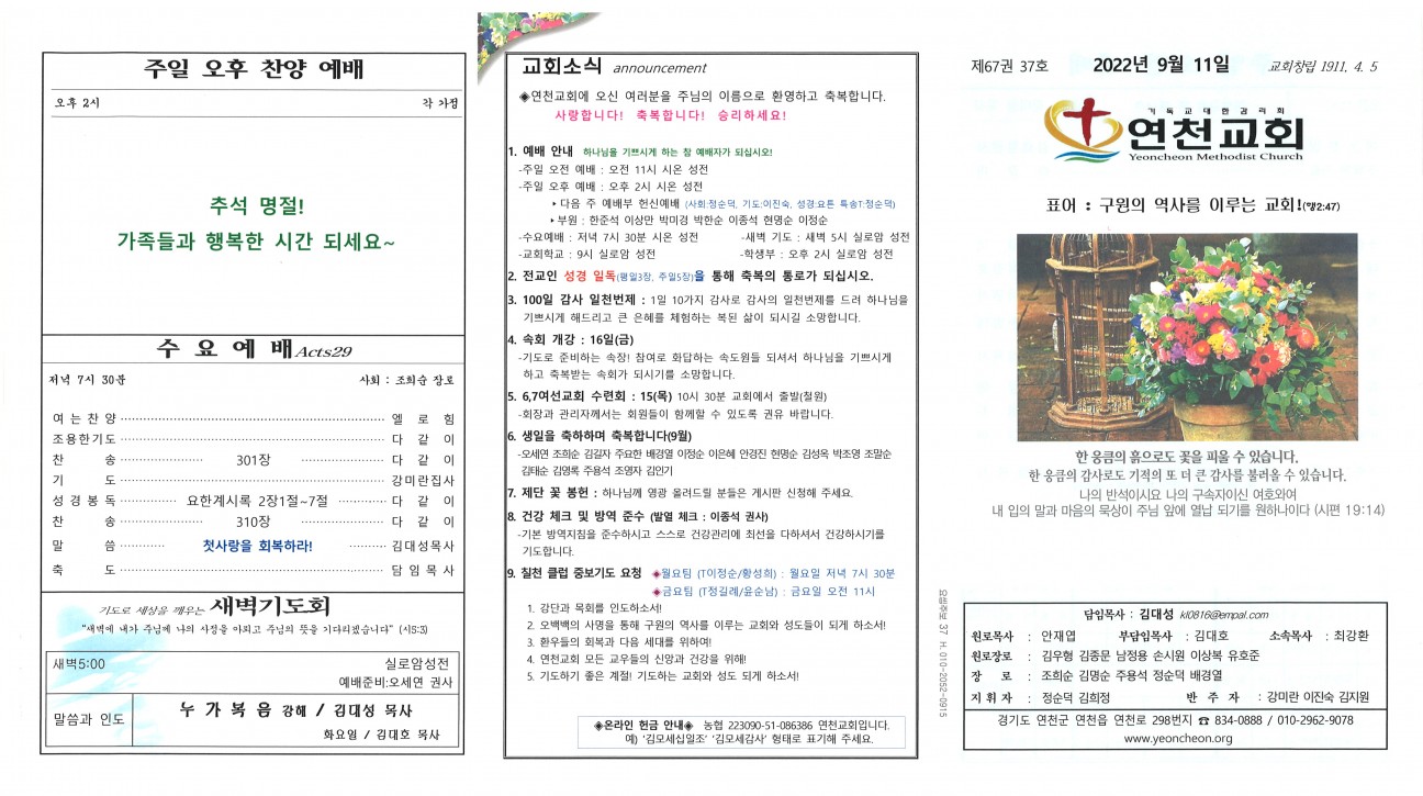 2022년 9월 11일 교회주보 본문 2022년 9월 11일 교회주보2022년 9월 11일 교회주보 샬롬 연천교회 조회 536회 2022-09-09 11:47 목록 댓글목록 이전글 2022년 9월 18일 교회주보 22.09.17 다음글 2022년 9월 10일 추석주보 22.09.09
