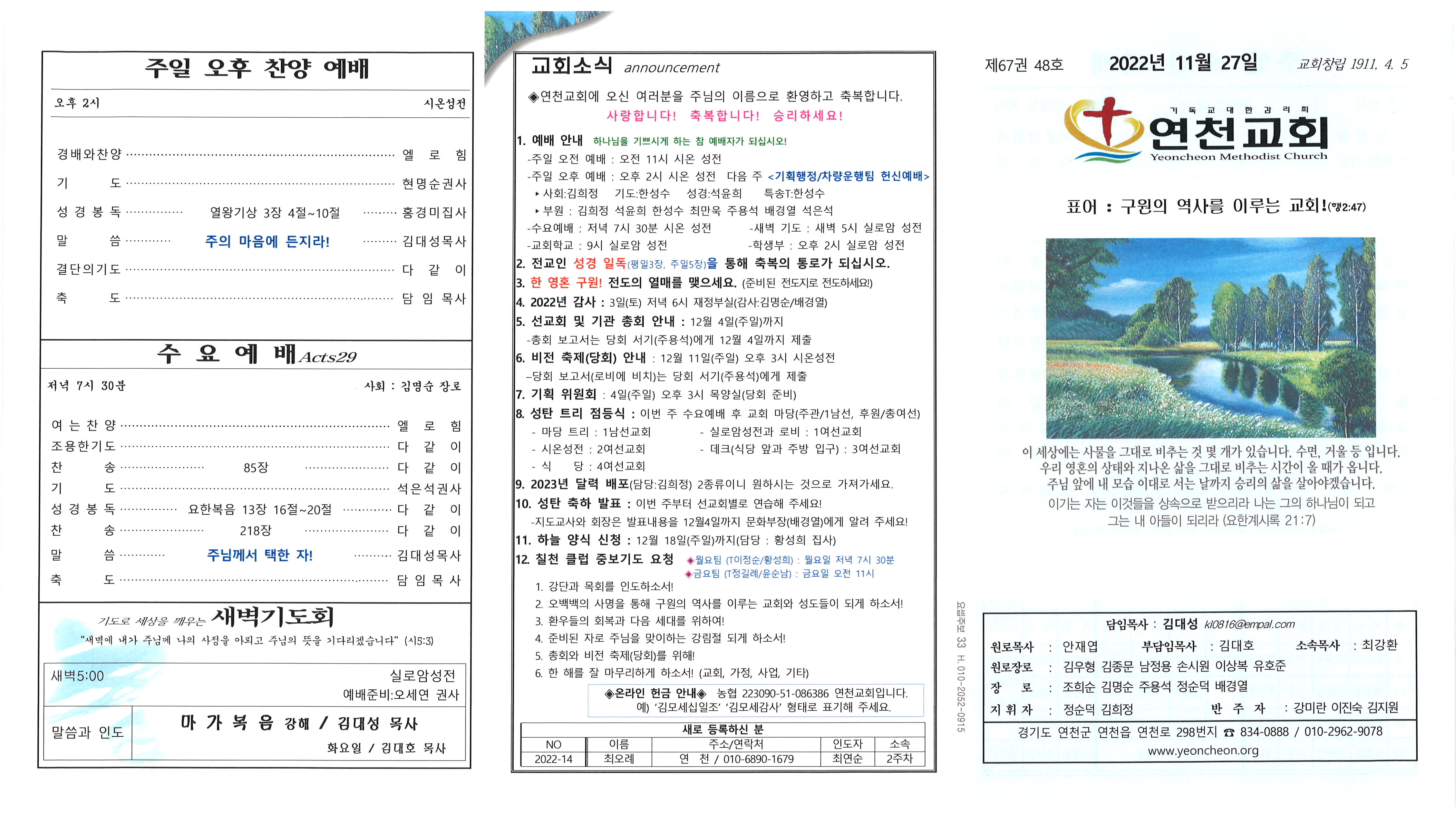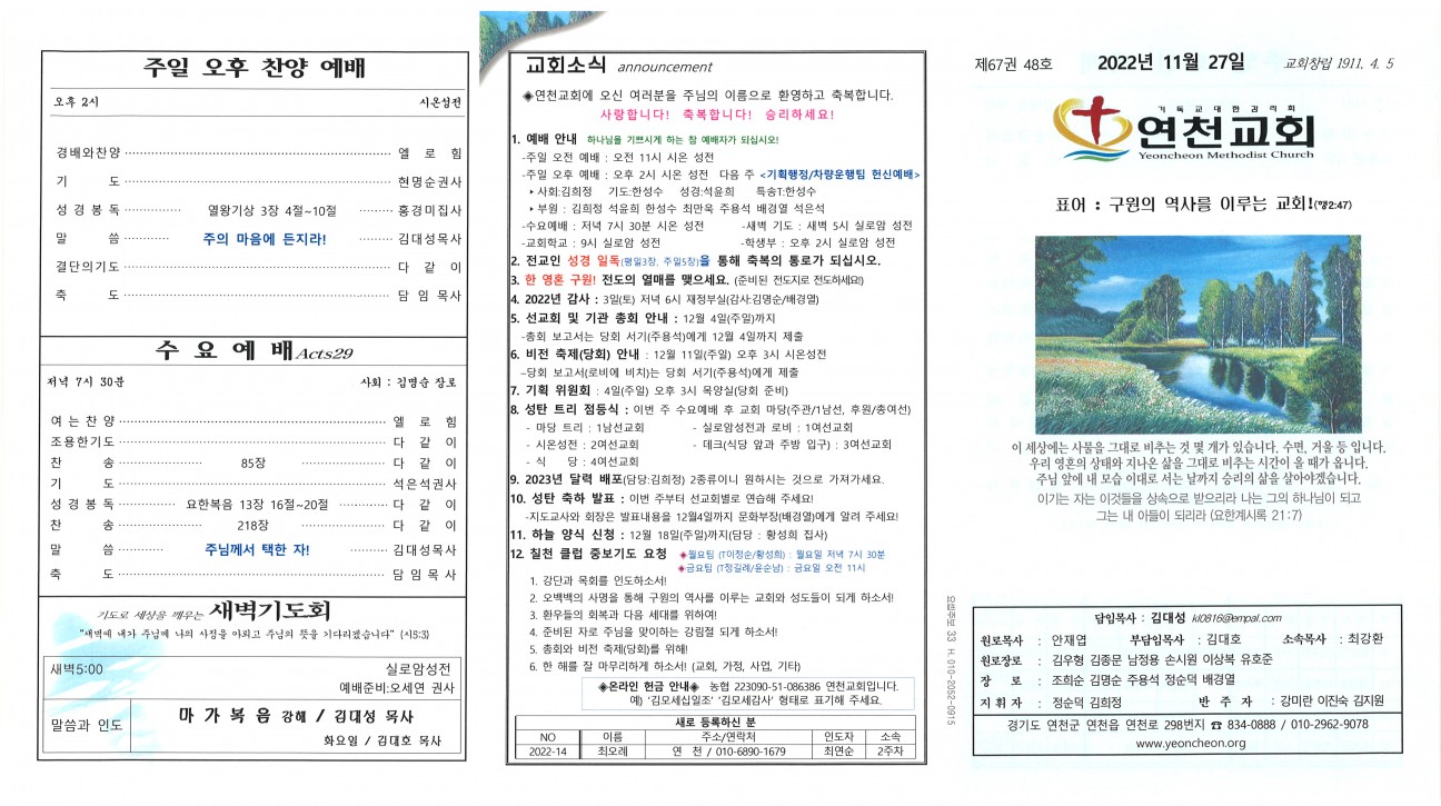 2022년 11월 27일 교회주보 본문 2022년 11월 27일 교회주보2022년 11월 27일 교회주보 샬롬 연천교회 조회 416회 2022-11-26 12:12 목록 댓글목록 이전글 2022년 12월 4일 교회주보 22.12.03 다음글 2022년 11월 20일 교회주보 22.11.19