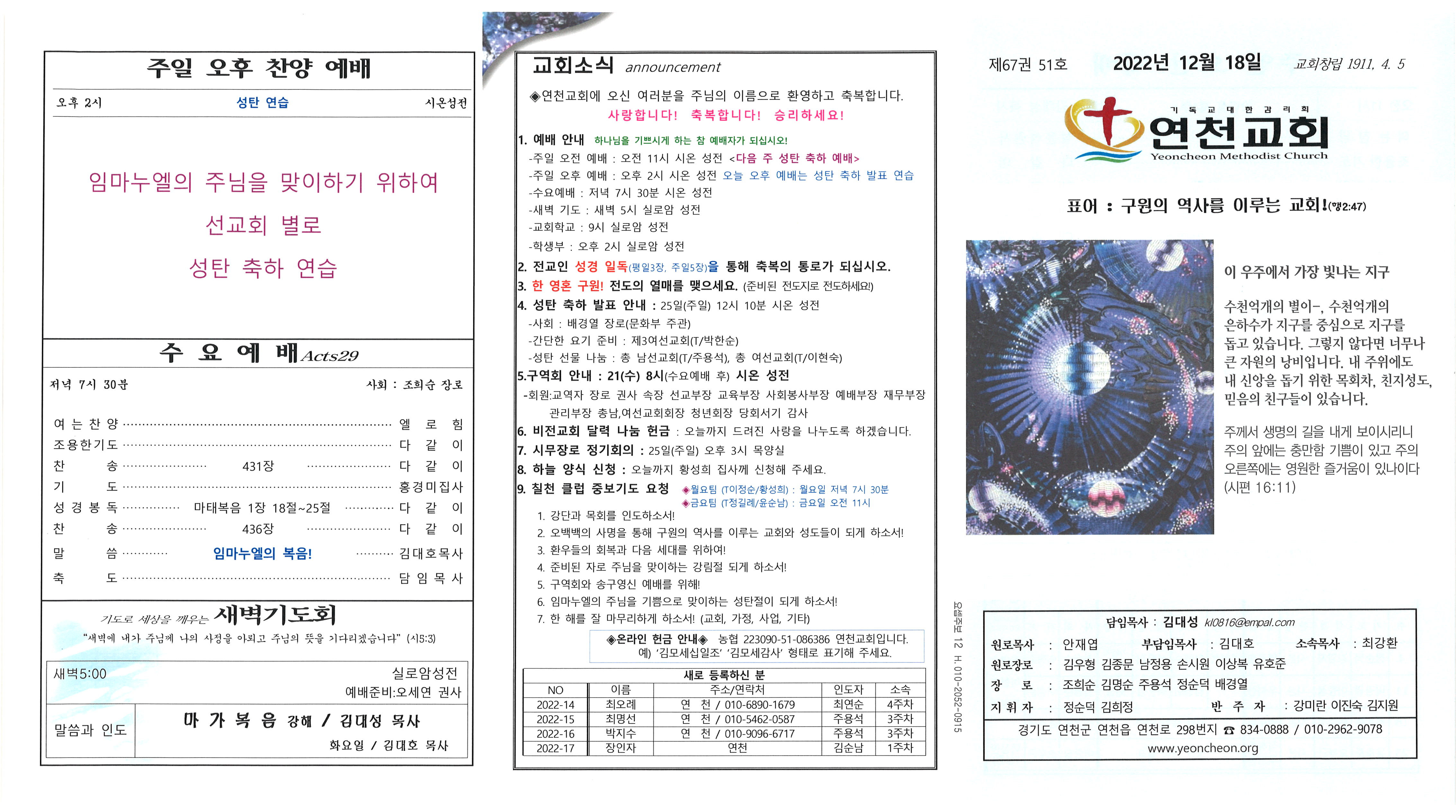 2022년 12월 18일 교회주보 본문 2022년 12월 18일 교회주보2022년 12월 18일 교회주보 샬롬 연천교회 조회 391회 2022-12-17 12:25 목록 댓글목록 이전글 2022년 12월 25일 교회주보 22.12.24 다음글 2022년 12월 11일 교회주보 22.12.10