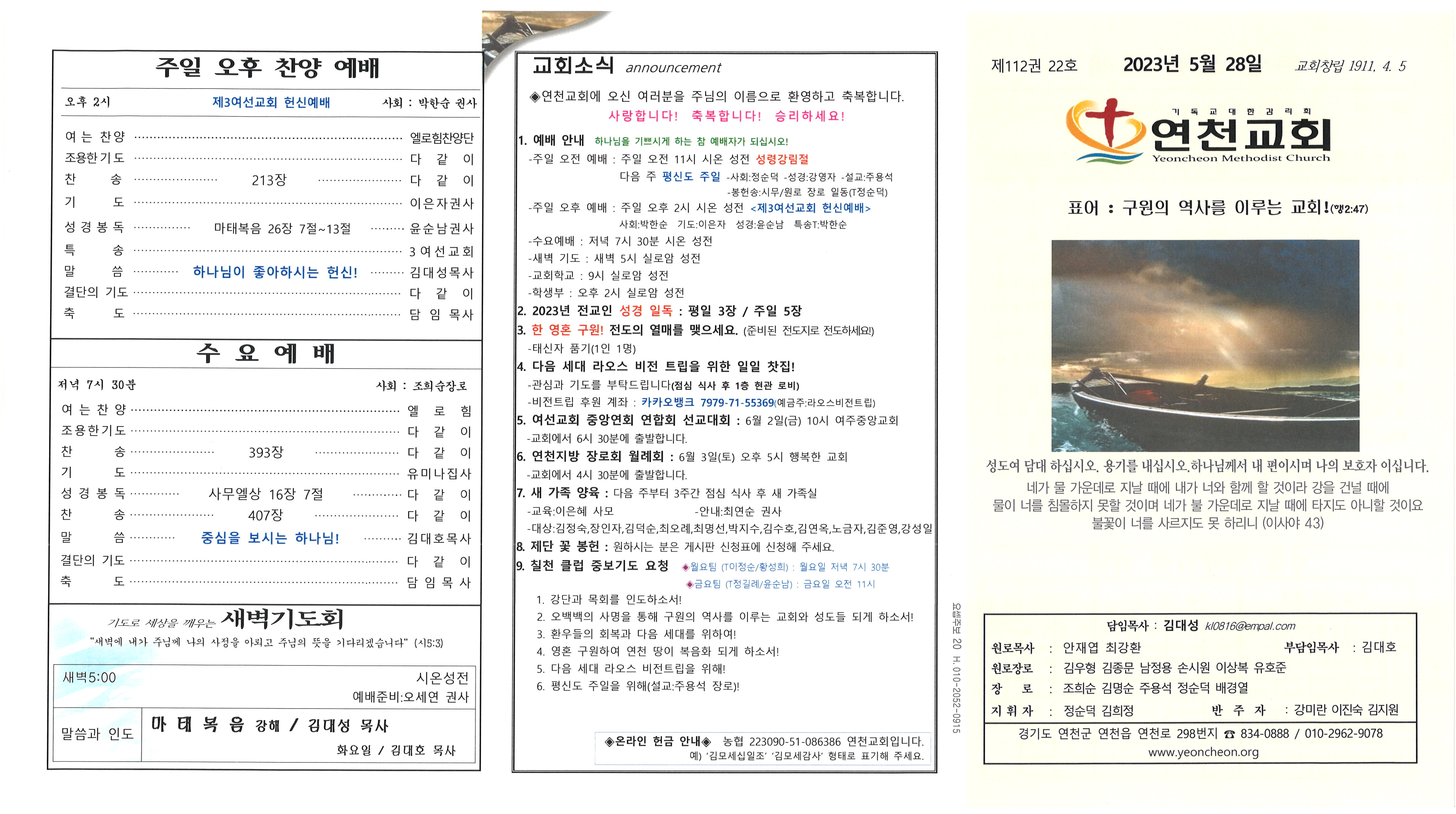 2023년 5월 28일 교회주보 본문 2023년 5월 28일 교회주보2023년 5월 28일 교회주보 샬롬 연천교회 조회 246회 2023-05-27 10:41 목록 댓글목록 이전글 2023년 6월 4일 교회주보 23.06.03 다음글 2023년 5월 21일 교회주보 23.05.20