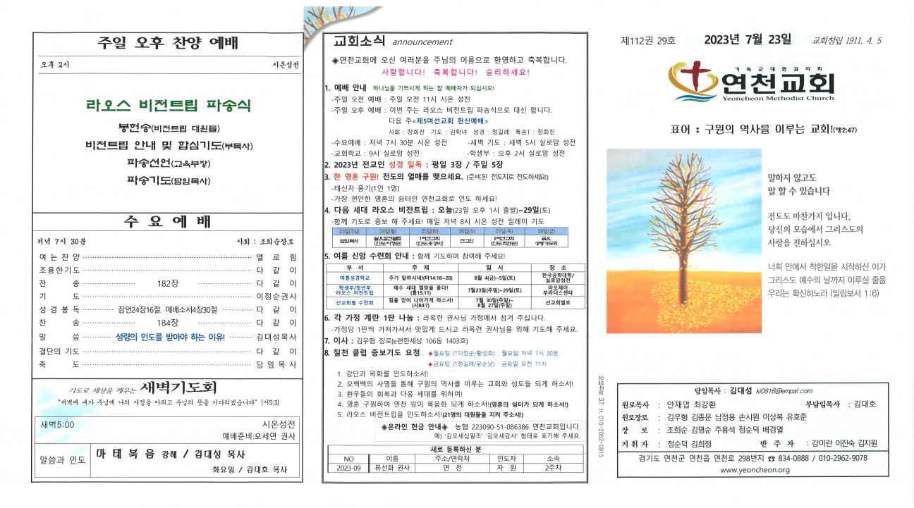 2023년 7월 23일 교회주보 본문 2023년 7월 23일 교회주보2023년 7월 23일 교회주보 샬롬 연천교회 조회 207회 2023-07-29 13:28 목록 댓글목록 이전글 2023년 7월 30일 교회주보 23.07.29 다음글 2023년 7월 15일 교회주보 23.07.15