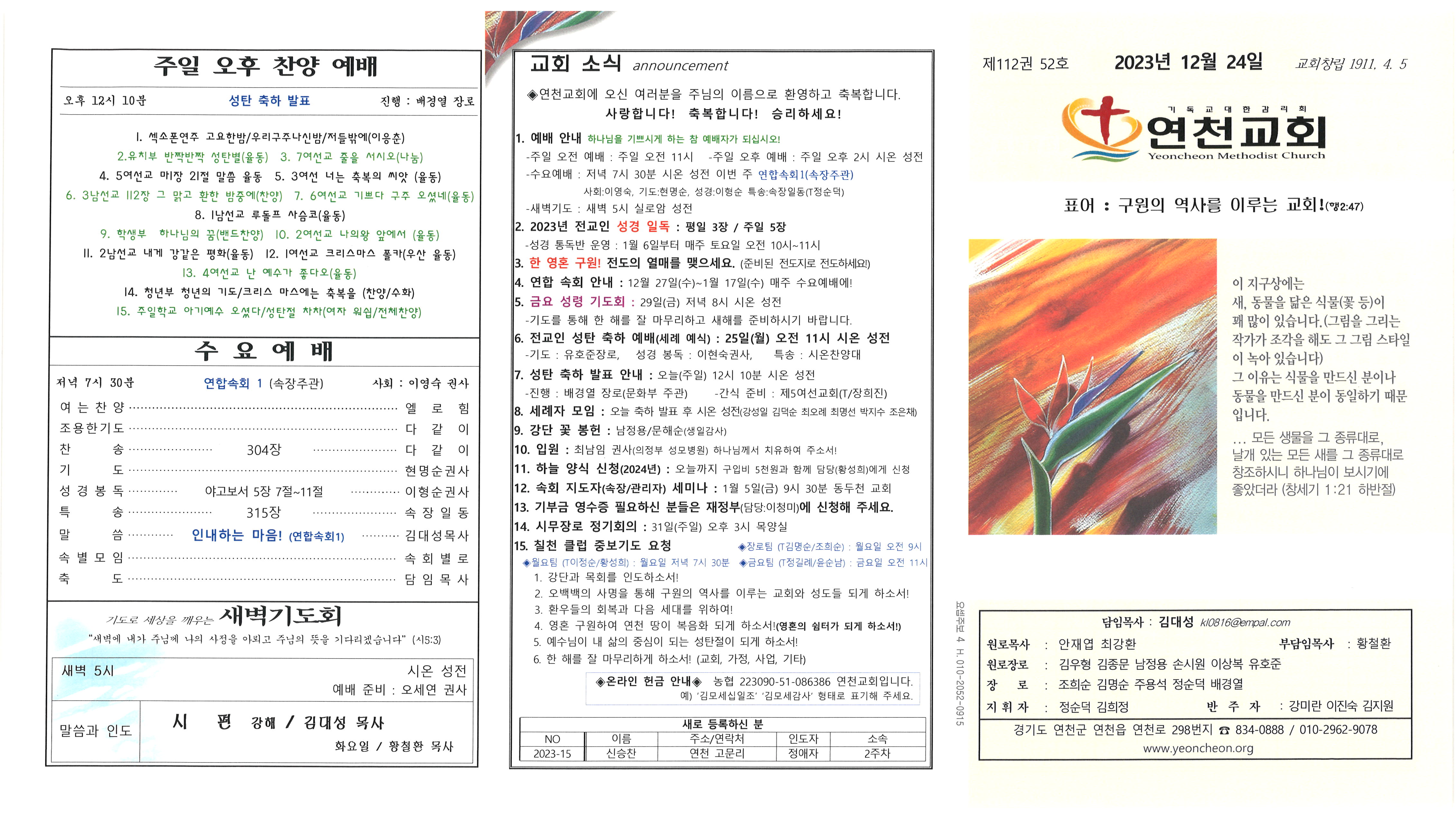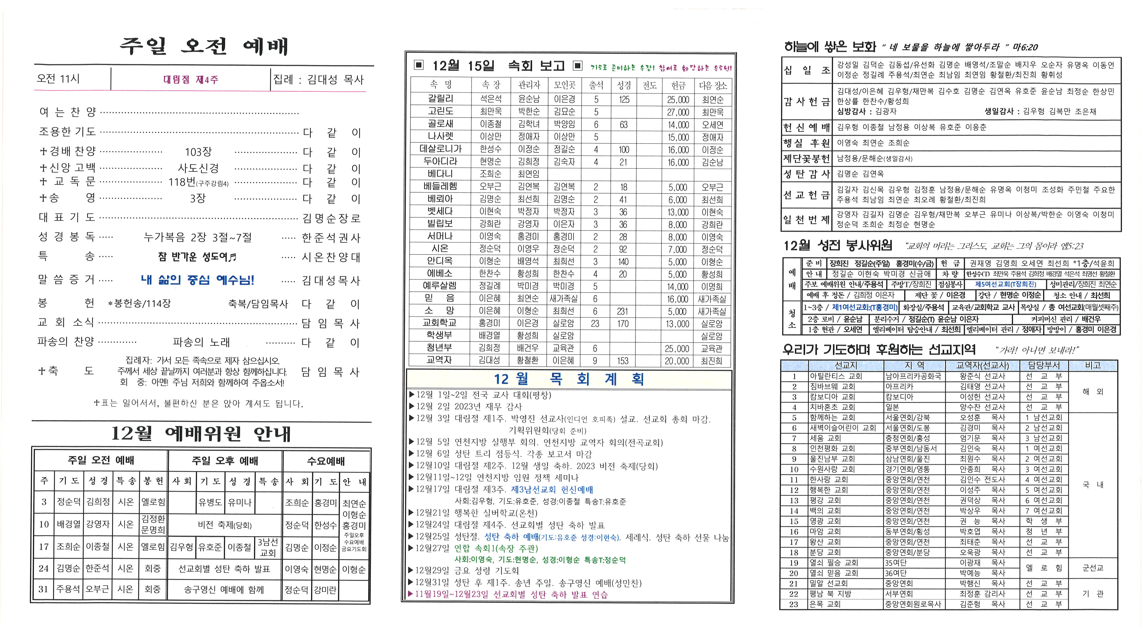 2023년 12월 24일 교회주보 본문 2023년 12월 24일 교회주보2023년 12월 24일 교회주보 샬롬 연천교회 조회 205회 2023-12-23 12:25 목록 댓글목록 이전글 2023년 12월 25일 성탄주보 23.12.23 다음글 2023년 12월 17일 교회주보 23.12.16