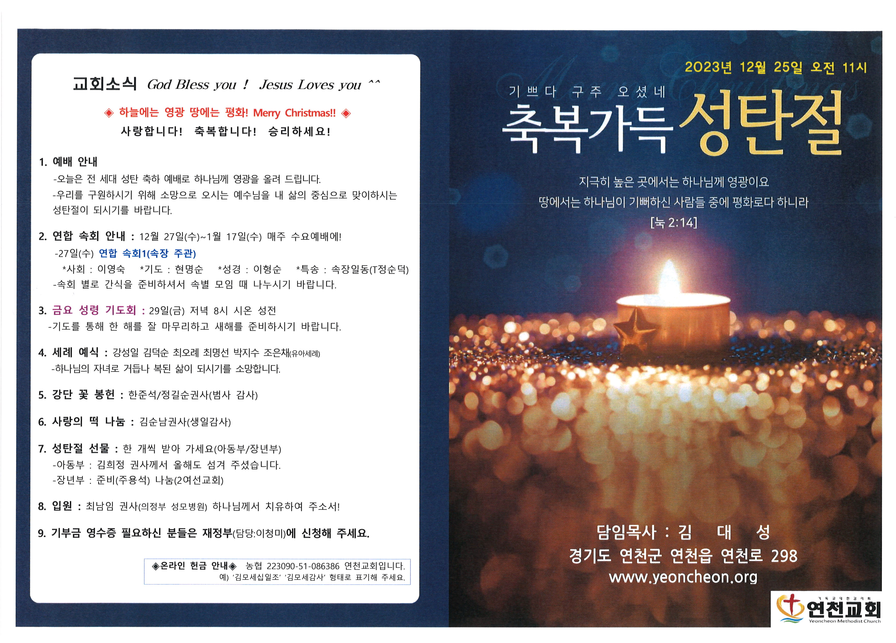 2023년 12월 25일 성탄주보 본문 2023년 12월 25일 성탄주보2023년 12월 25일 성탄주보 멜리크리스마스! 연천교회 조회 207회 2023-12-23 13:55 목록 댓글목록 이전글 2024년 1월 7일 교회주보 24.01.06 다음글 2023년 12월 24일 교회주보 23.12.23