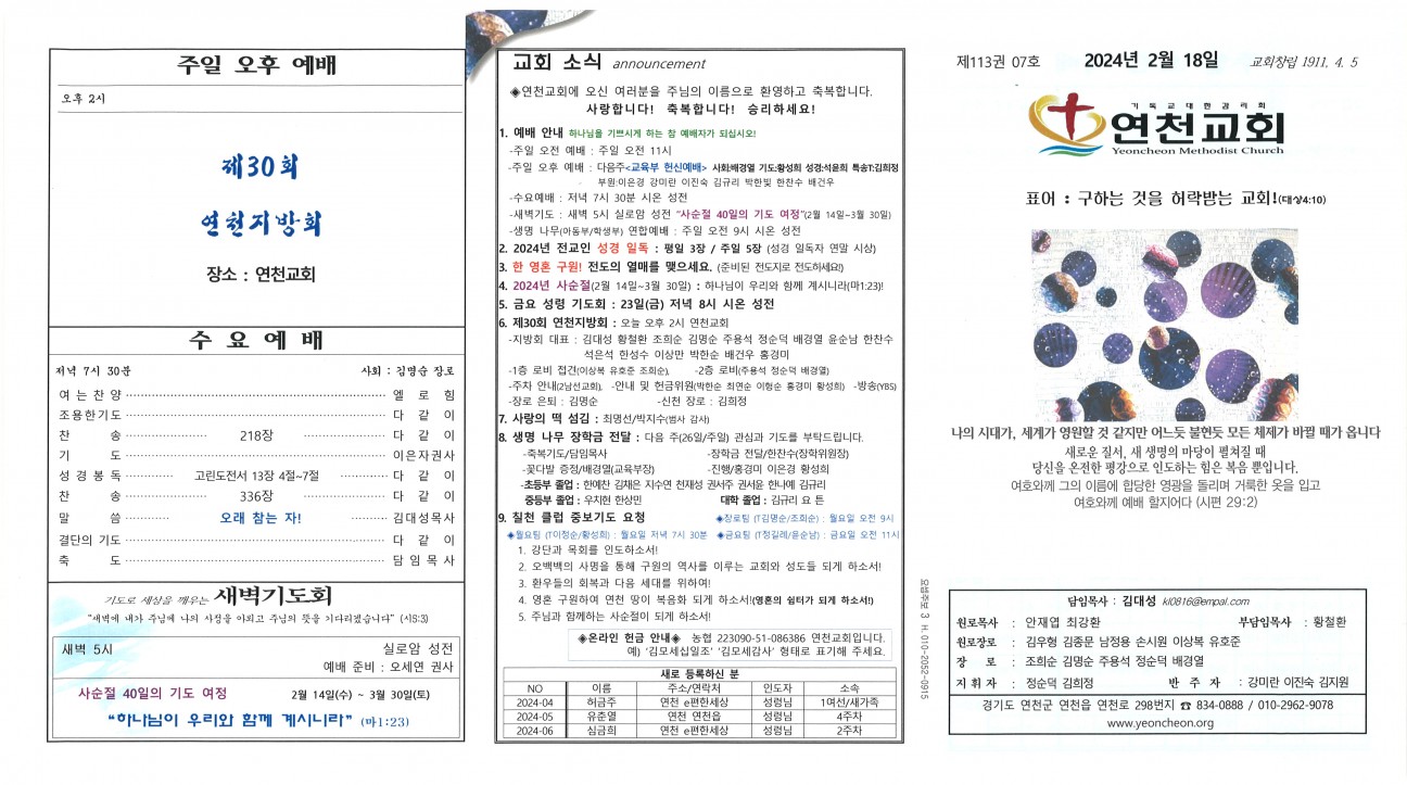 2024년 2월 18일 교회주보 본문 2024년 2월 18일 교회주보2024년 2월 18일 교회주보 샬롬 연천교회 조회 201회 2024-02-17 12:06 목록 댓글목록 이전글 2024년 2월 24일 교회주보 24.02.24 다음글 2024년 2월 11일 교회주보 24.02.09