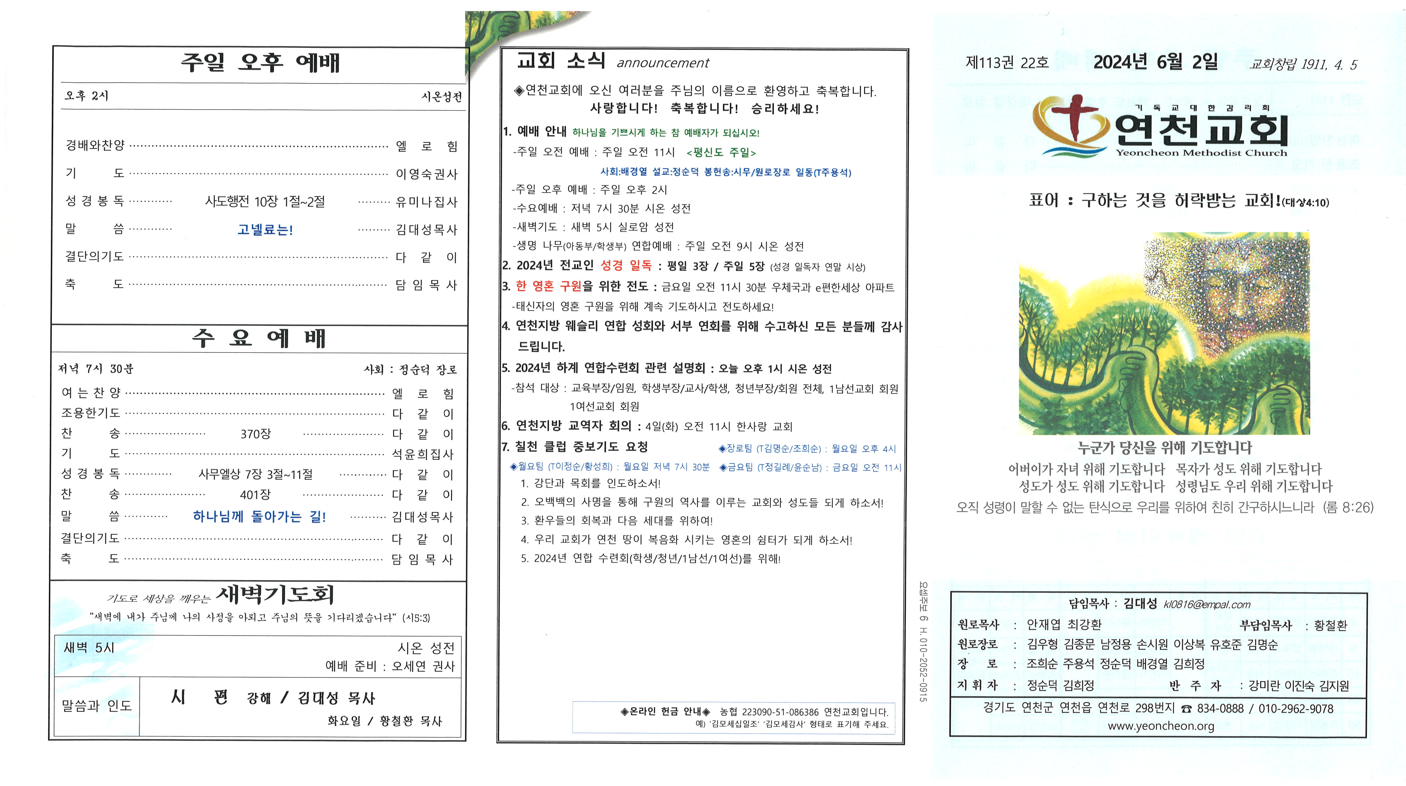 2024년 6월 2일 교회주보 본문 2024년 6월 2일 교회주보2024년 6월 2일 교회주보 샬롬 연천교회 조회 195회 2024-06-01 10:20 목록 댓글목록 이전글 2024년 6월 9일 교회주보 24.06.08 다음글 2024년 5월 26일 교회주보 24.05.25