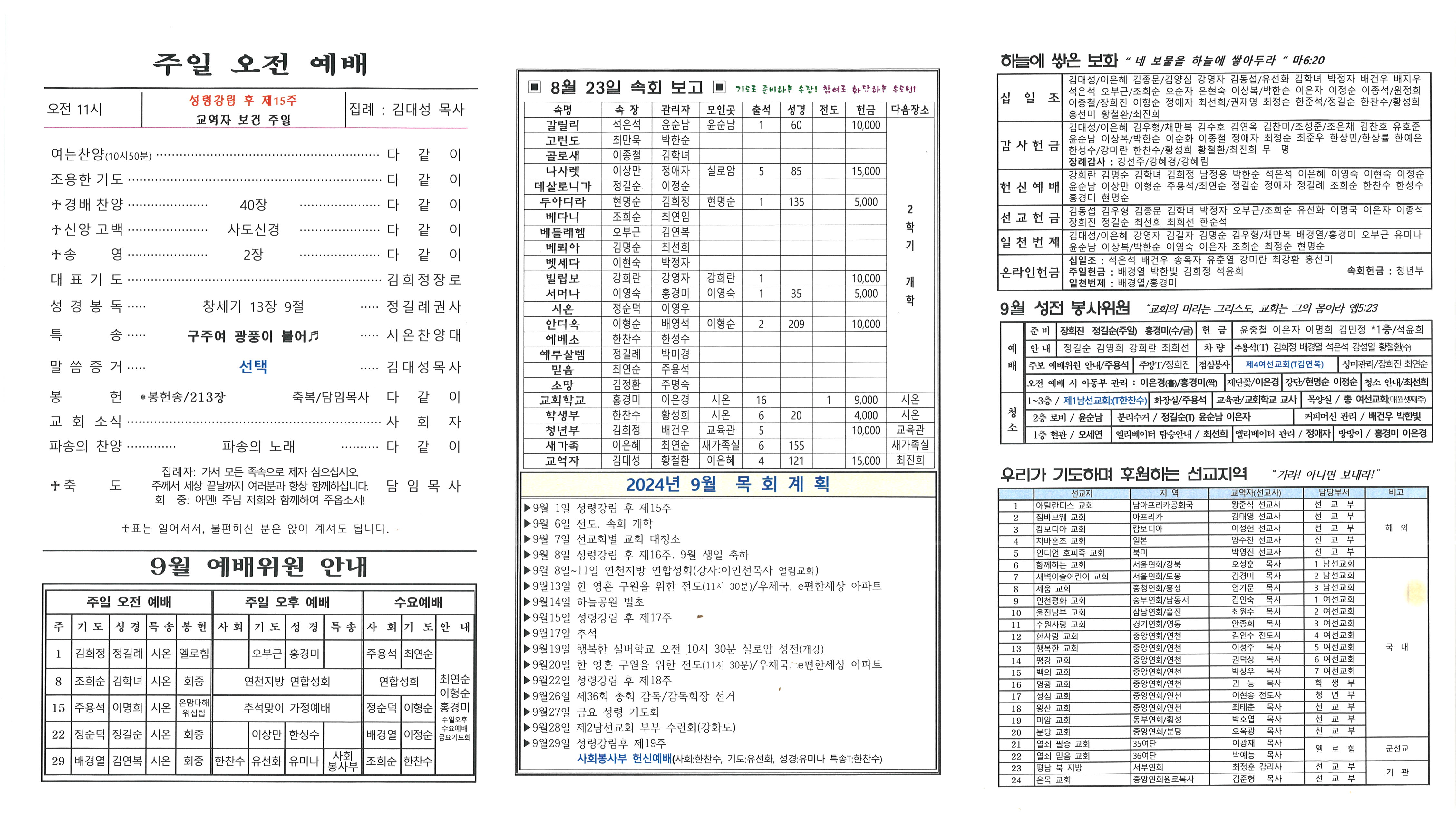 2024년 9월 1일 교회주보 본문 2024년 9월 1일 교회주보2024년 9월 1일 교회주보 샬롬 연천교회 조회 207회 2024-08-31 10:46 목록 댓글목록 이전글 2024년 9월 8일 교회주보 24.09.07 다음글 2024년 8월 24일 교회주보 24.08.24