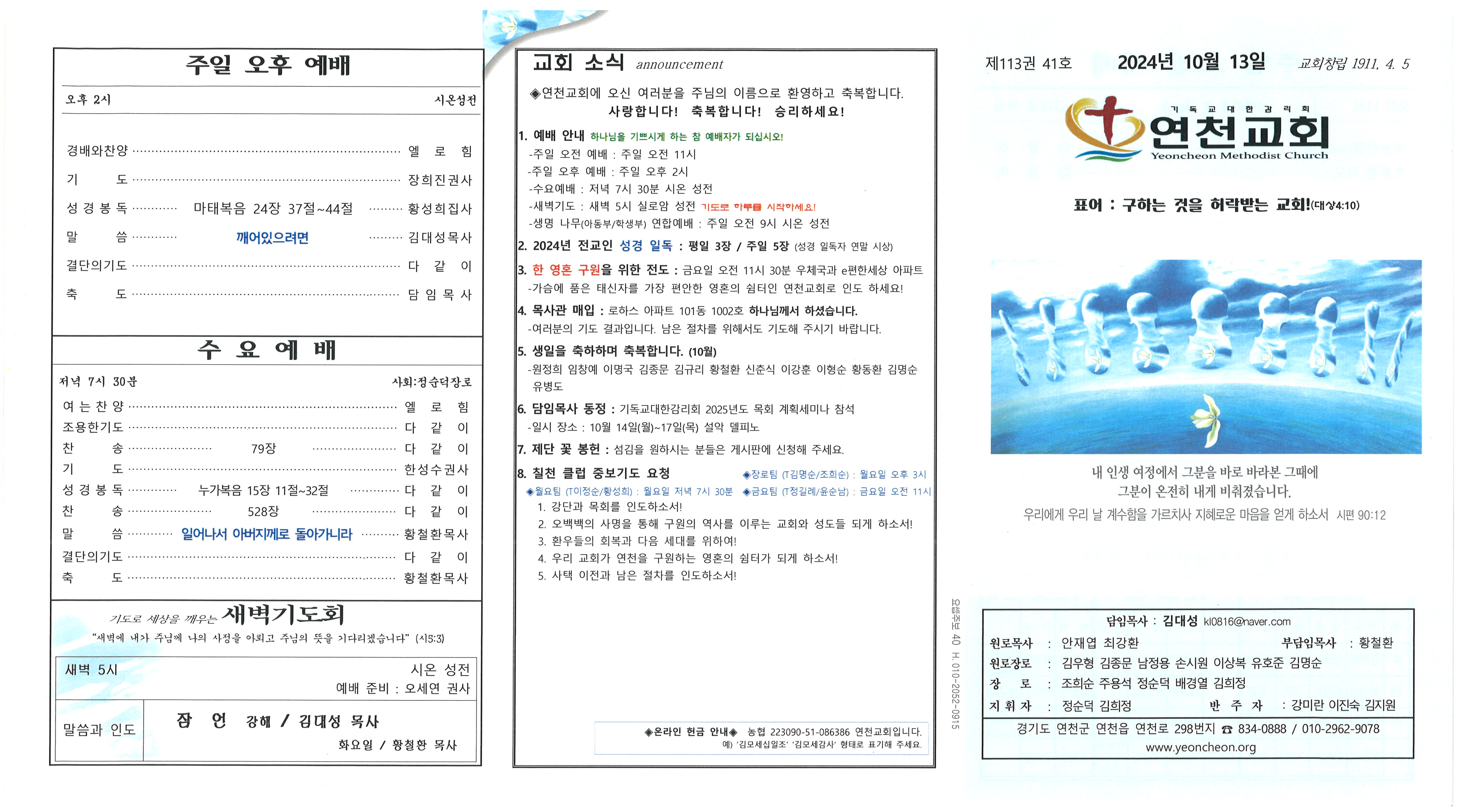 2024년 10월 13일 교회주보 본문 2024년 10월 13일 교회주보2024년 10월 13일 교회주보 샬롬 연천교회 조회 210회 2024-10-12 10:11 목록 댓글목록 이전글 2024년 10월 20일 교회주보 24.10.19 다음글 2024년 10월 6일 교회주보 24.10.05