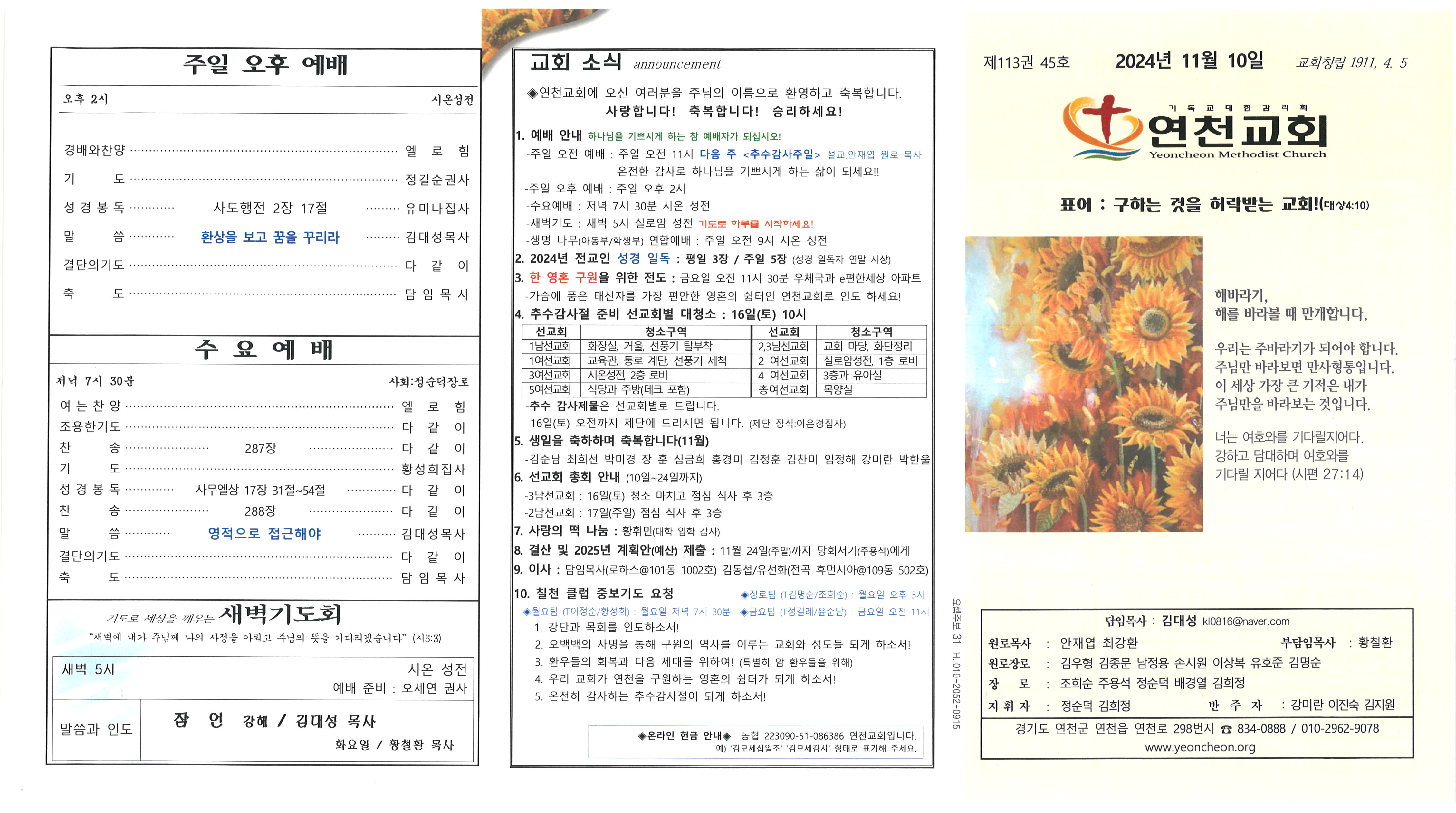 2024년 11월 10일 교회주보 본문 2024년 11월 10일 교회주보2024년 11월 10일 교회주보 샬롬 연천교회 조회 214회 2024-11-09 10:07 목록 댓글목록 이전글 2024년 11월 17일 교회주보 24.11.16 다음글 2024년 11월 3일 교회주보 24.11.02
