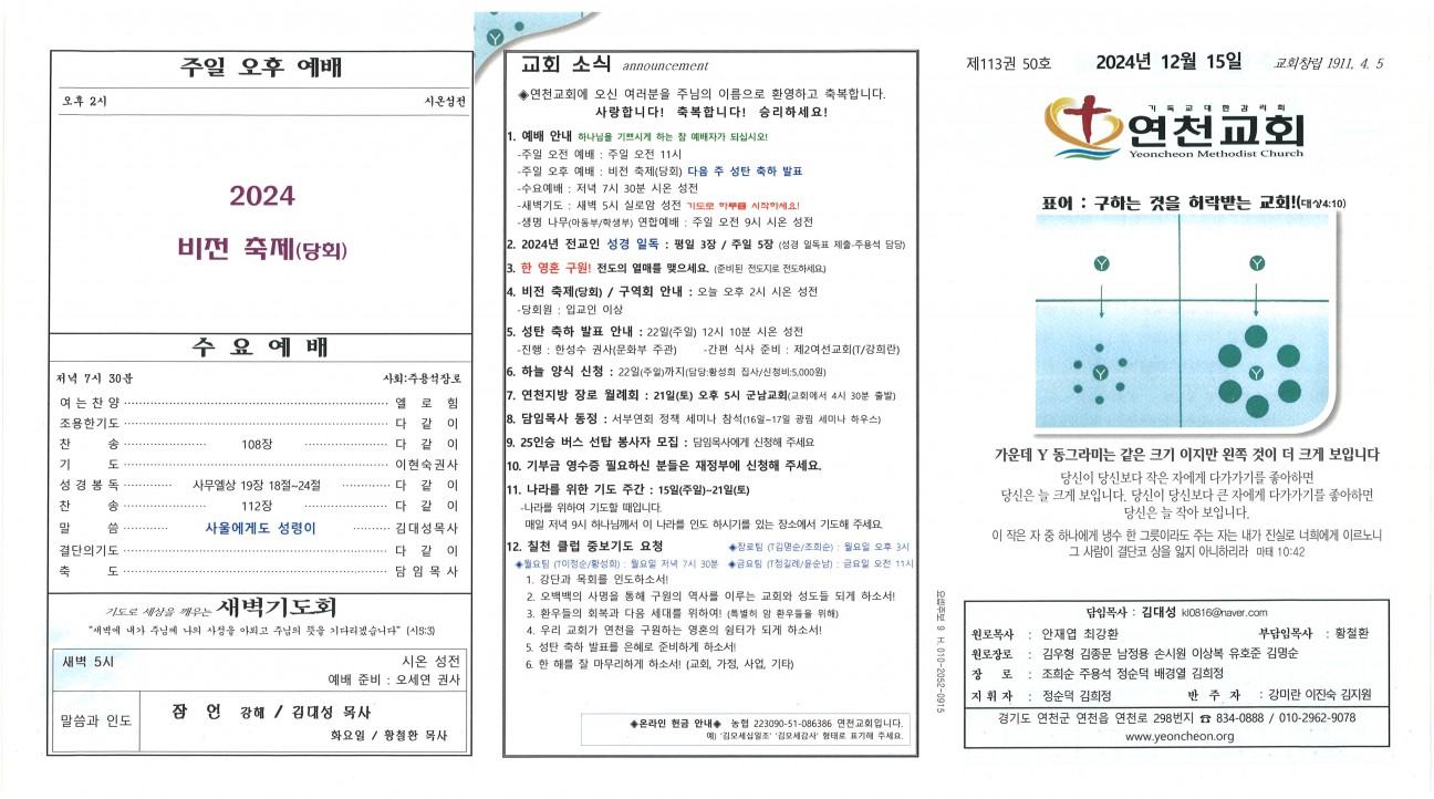 2024년 12월 22일 교회주보 본문 2024년 12월 22일 교회주보2024년 12월 22일 교회주보 샬롬 연천교회 조회 212회 2024-12-21 13:28 목록 댓글목록 이전글 2024년 12월 29일 교회주보 25.01.04 다음글 2024년 12월 15일 교회주보 24.12.14
