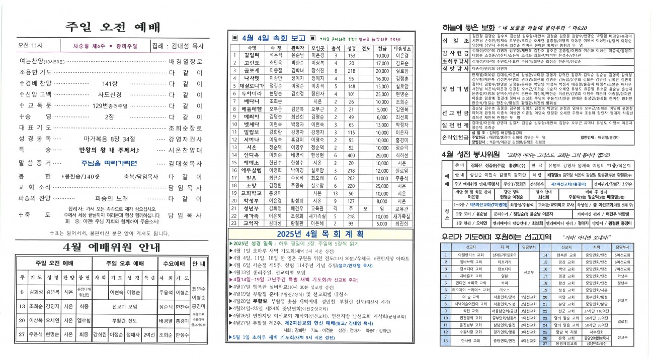 2025년 4월 13일 교회주보 본문 2025년 4월 13일 교회주보2025년 4월 13일 교회주보 샬롬 연천교회 조회 206회 2025-04-12 10:04 목록 댓글목록 이전글 2025년 4월 20일 교회주보 25.04.19 다음글 2025년 3월 23일 교회주보 25.03.22