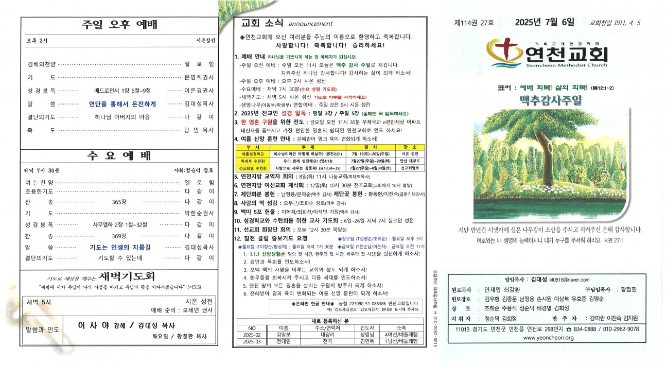 2025년 7월 6일 교회주보 본문 2025년 7월 6일 교회주보2025년 7월 6일 교회주보 샬롬 연천교회 조회 199회 2025-07-05 10:30 목록 댓글목록 이전글 2025년 7월 13일 교회주보 25.07.12 다음글 2025년 6월 29일 교회주보 25.06.28