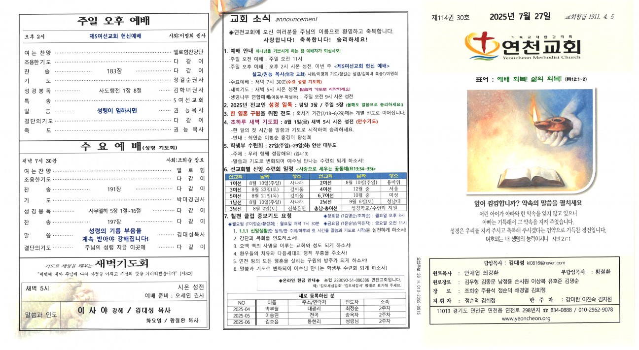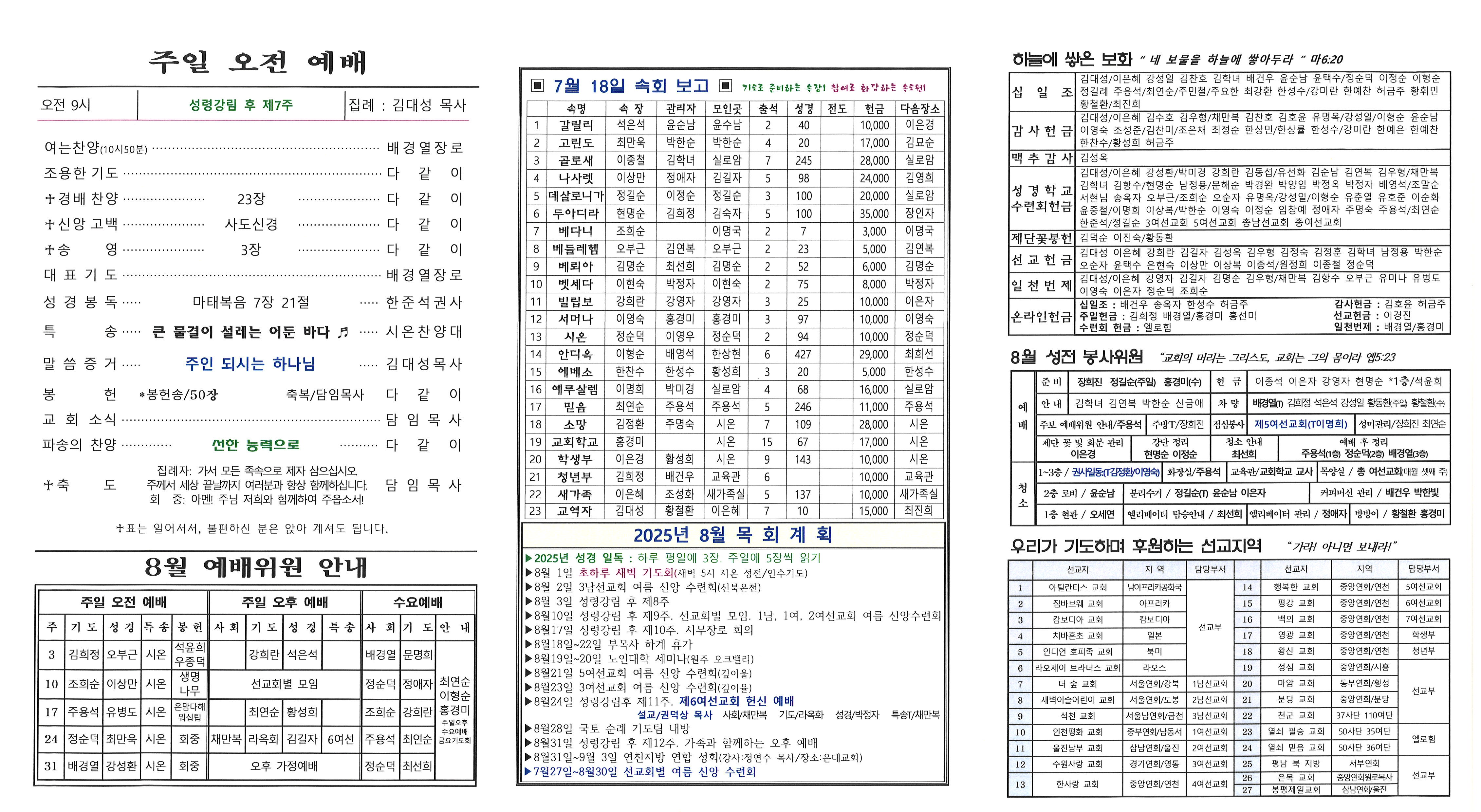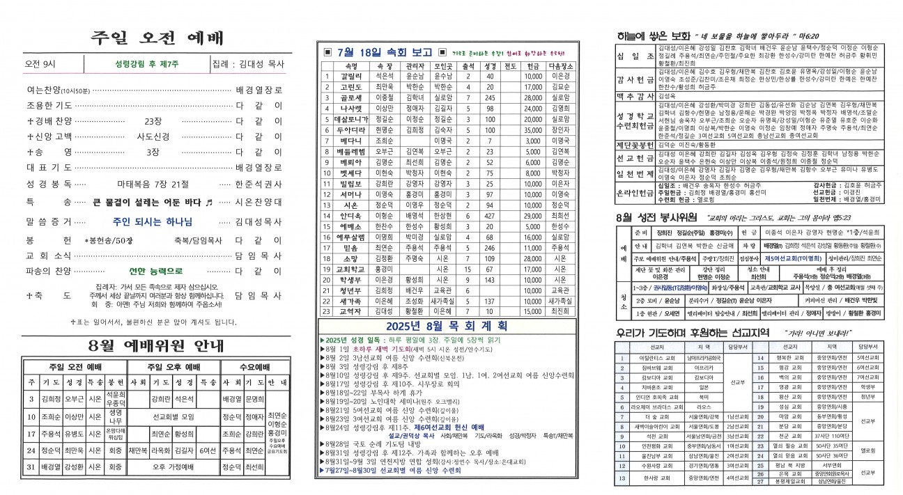 2025년 7월 27일 교회주보 본문 2025년 7월 27일 교회주보2025년 7월 27일 교회주보 샬롬 연천교회 조회 210회 2025-07-26 09:31 목록 댓글목록 이전글 2025년 8월 3일 교회주보 25.08.02 다음글 2025년 7월 20일 교회주보 25.07.19
