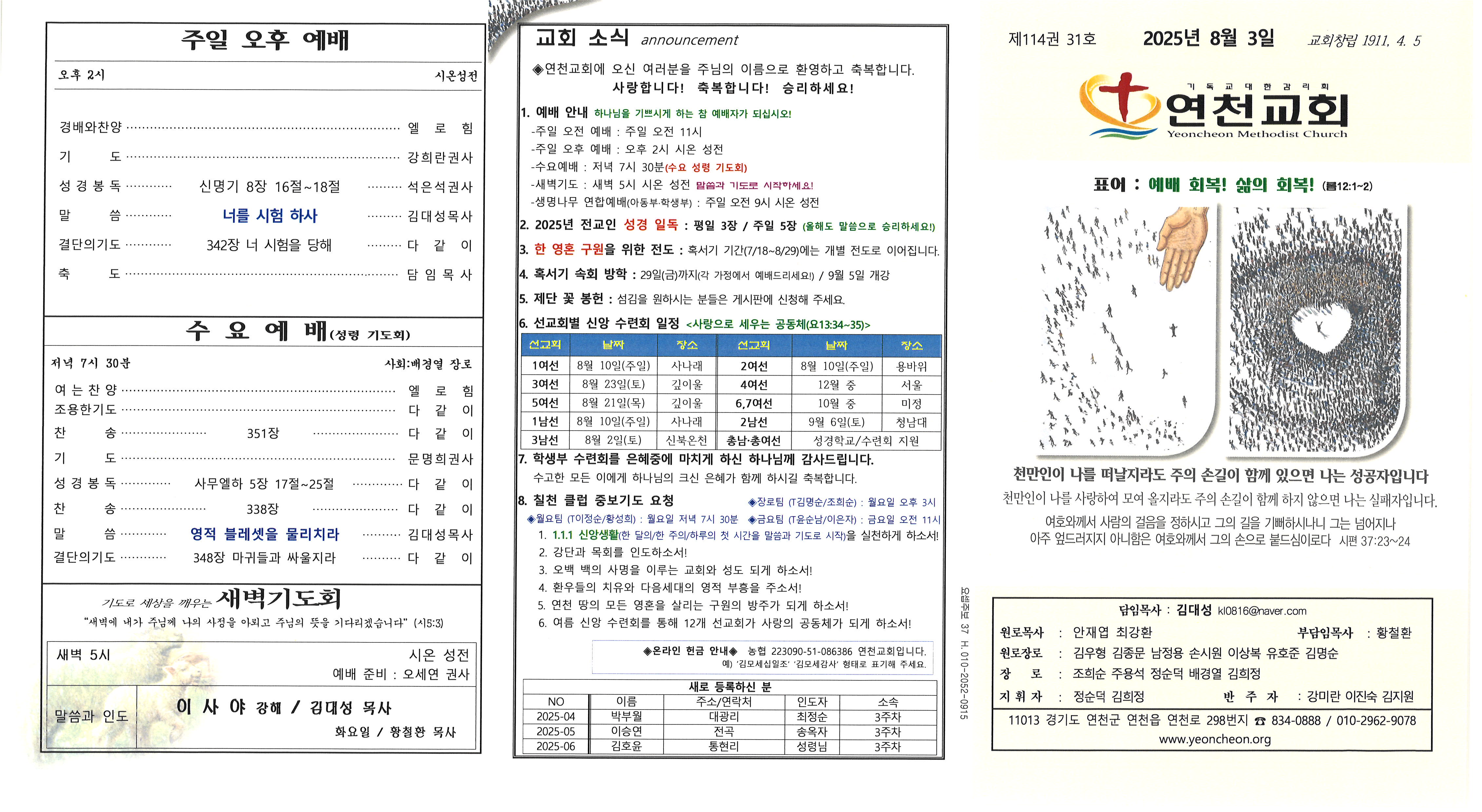 2025년 8월 3일 교회주보 본문 2025년 8월 3일 교회주보2025년 8월 3일 교회주보 샬롬 연천교회 조회 203회 2025-08-02 09:58 목록 댓글목록 이전글 2025년 8월 10일 교회주보 25.08.09 다음글 2025년 7월 27일 교회주보 25.07.26