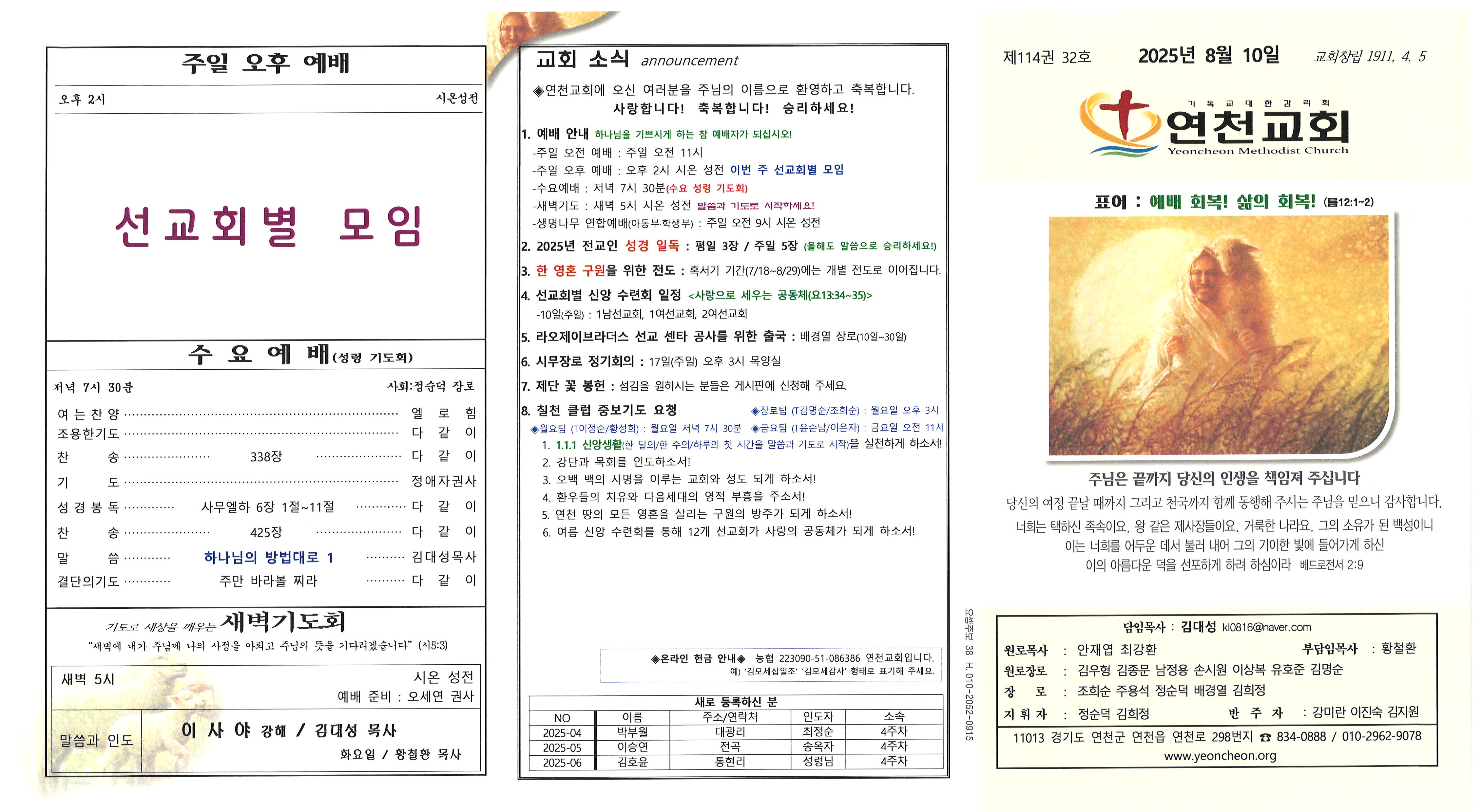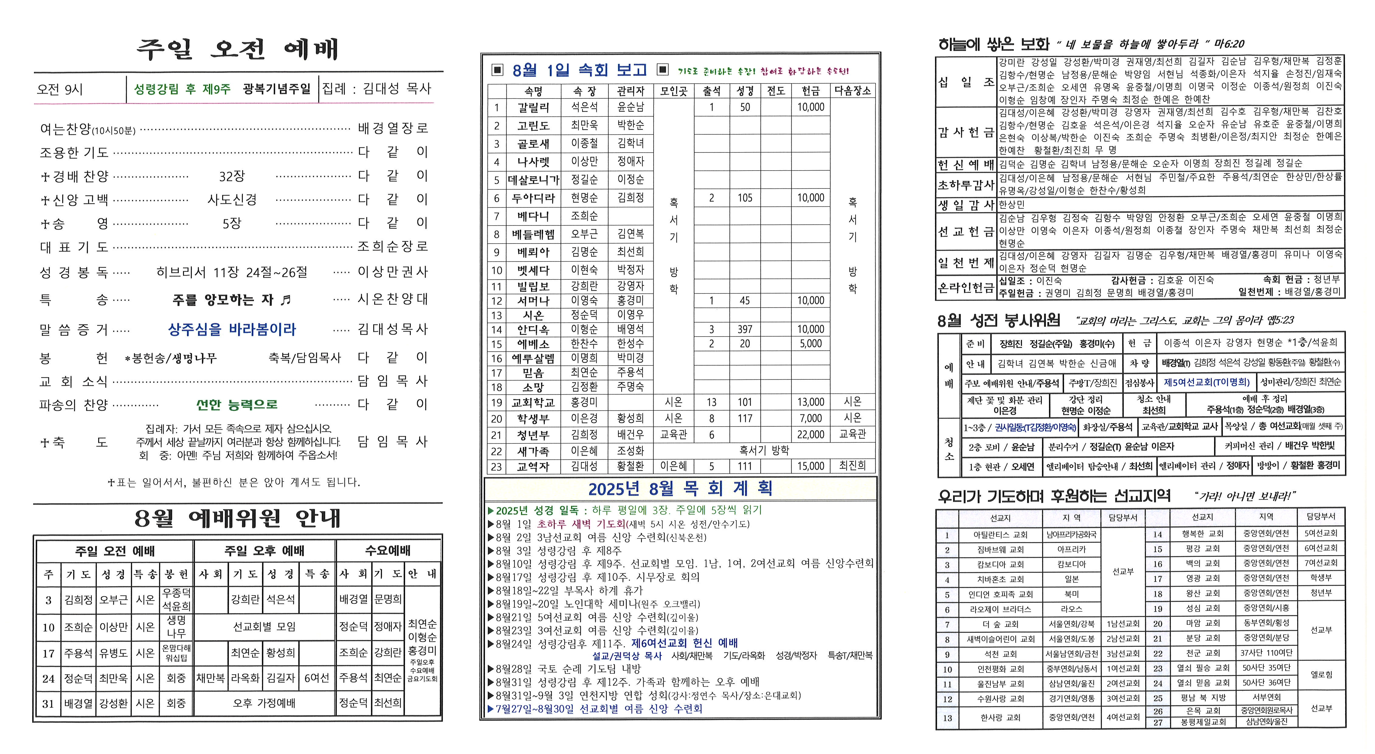 2025년 8월 10일 교회주보 본문 2025년 8월 10일 교회주보2025년 8월 10일 교회주보 샬롬 연천교회 조회 200회 2025-08-09 10:07 목록 댓글목록 이전글 2025년 8월 17일 교회주보 25.08.16 다음글 2025년 8월 3일 교회주보 25.08.02